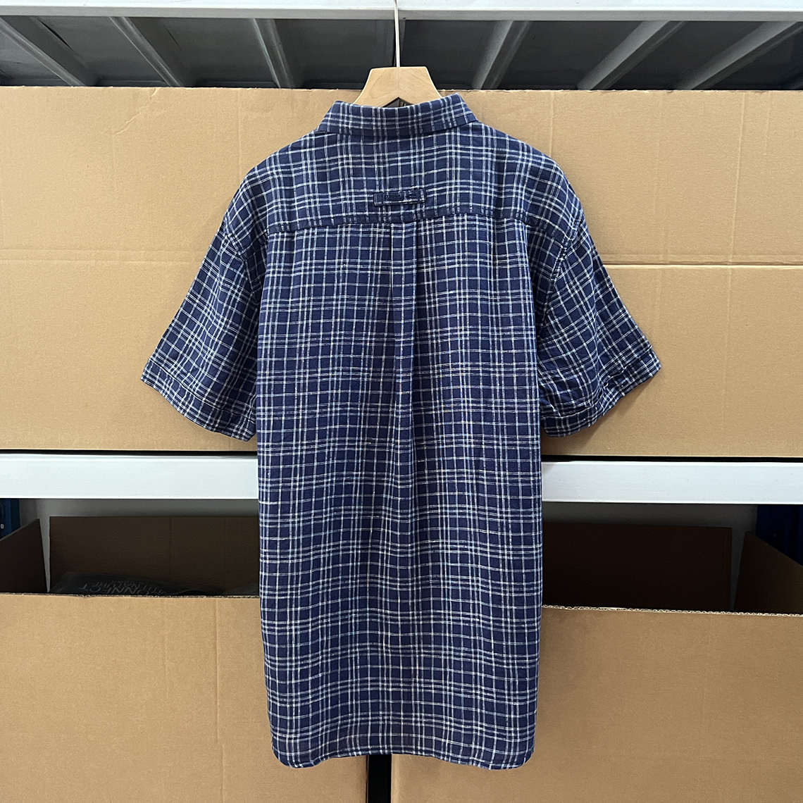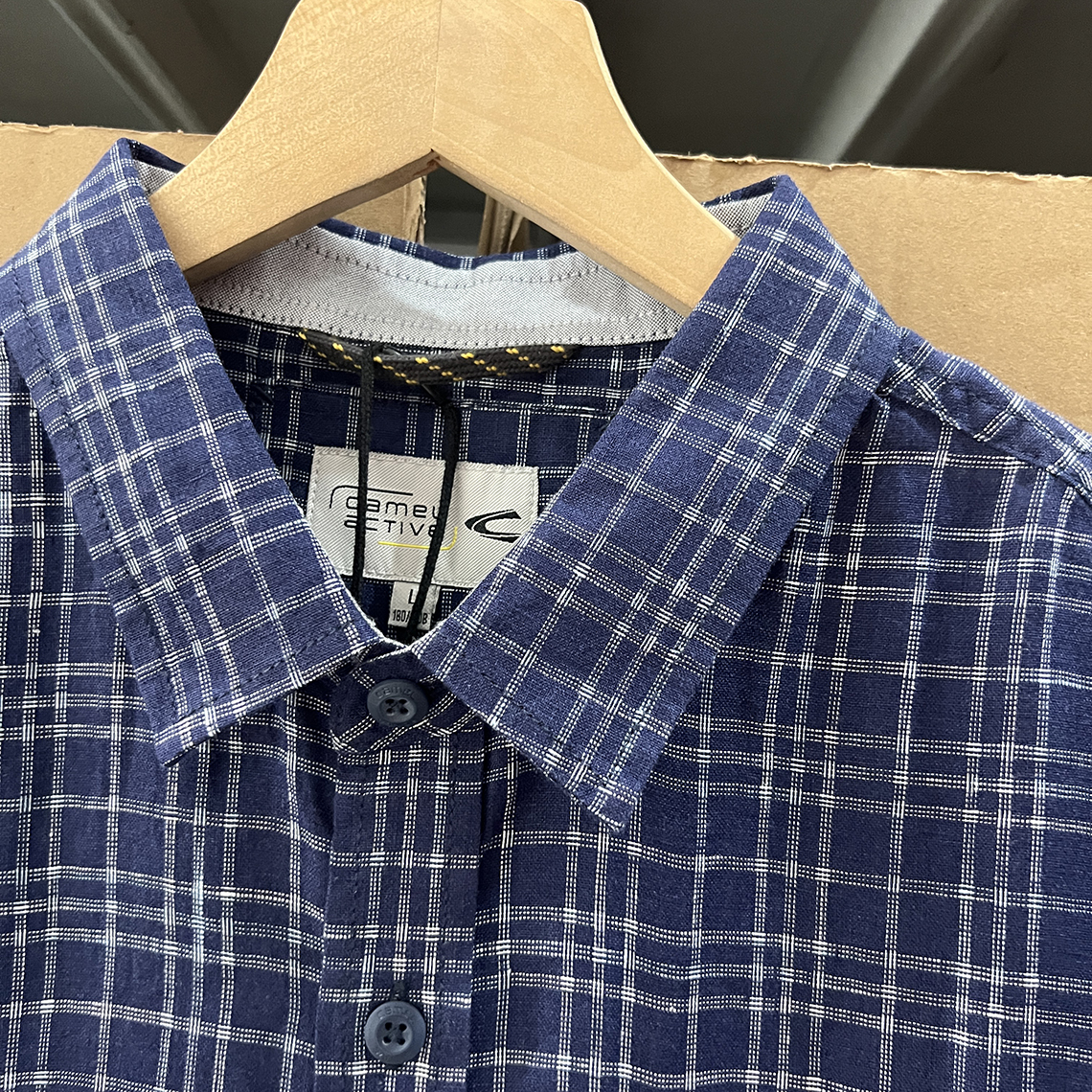 骆驼动感Camel Active男装夏亚麻短袖格子衬衫透气休闲商务衬衣