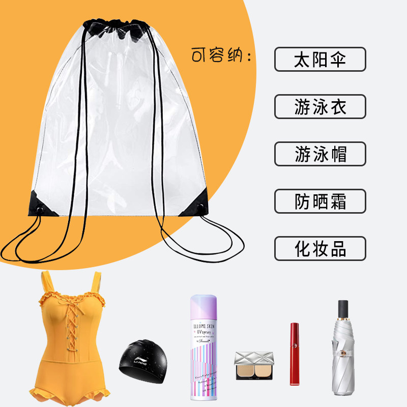 双肩包透明束口袋抽绳防水轻便折叠户外旅行游泳运动简易背包健身