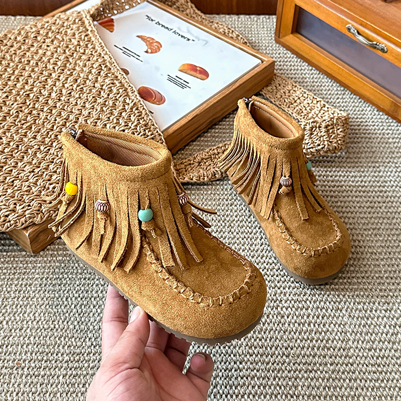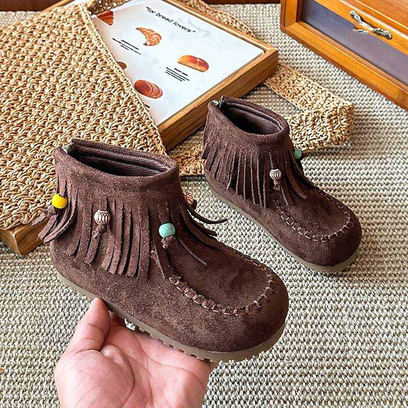 女童流苏短靴2025秋新款复古西部牛仔公主风宝宝单靴时装靴马丁靴