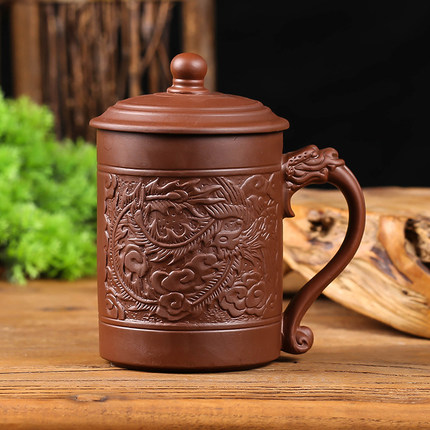 宜兴紫砂杯男士茶杯主人杯陶瓷泡茶杯家用办公杯子过滤单个带盖杯