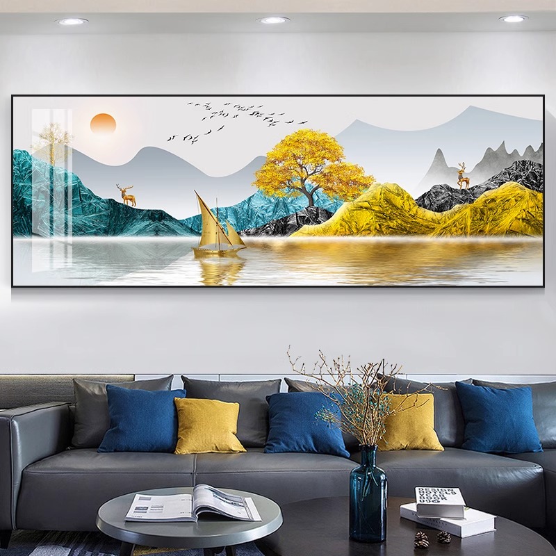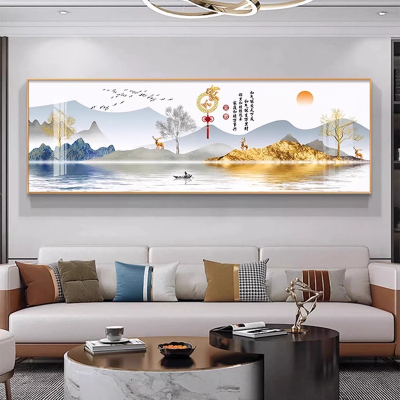 客厅装饰画沙发背景墙画壁画新中式挂画晶瓷墙壁山水画家和万事兴