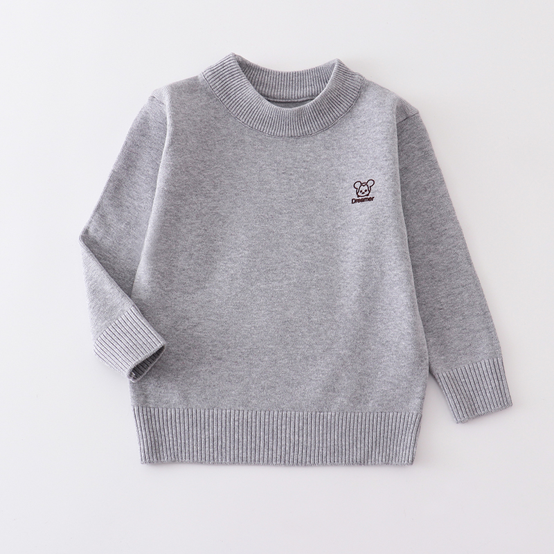 男女童毛衣宝宝中大童纯色全棉圆领套头针织衫儿童加绒打底衫线衣