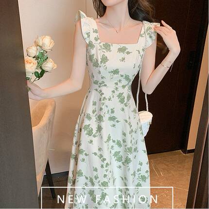 2024年夏季新款吊带裙子复古浪漫收腰显瘦连衣裙小众设计碎花裙潮