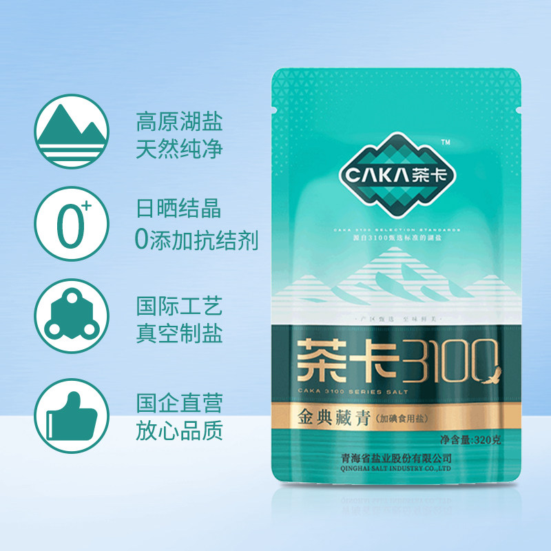 茶卡金典藏青加碘食用盐320g天然结晶青海湖盐调味品家用