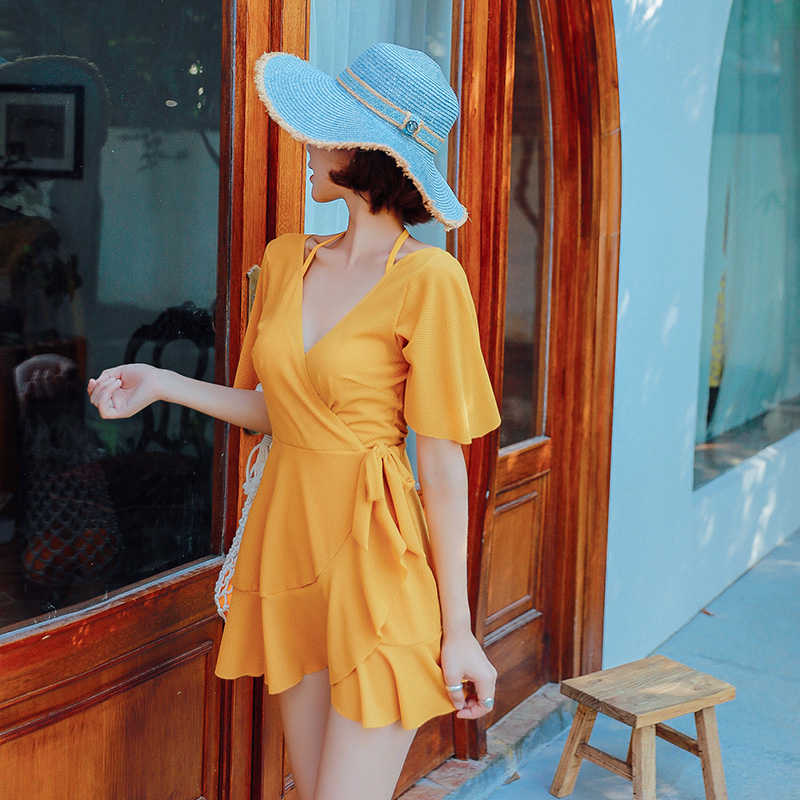 胖mm大码泳衣女连体遮肚性感显瘦遮肉大胸裙式平角聚拢游泳衣温泉