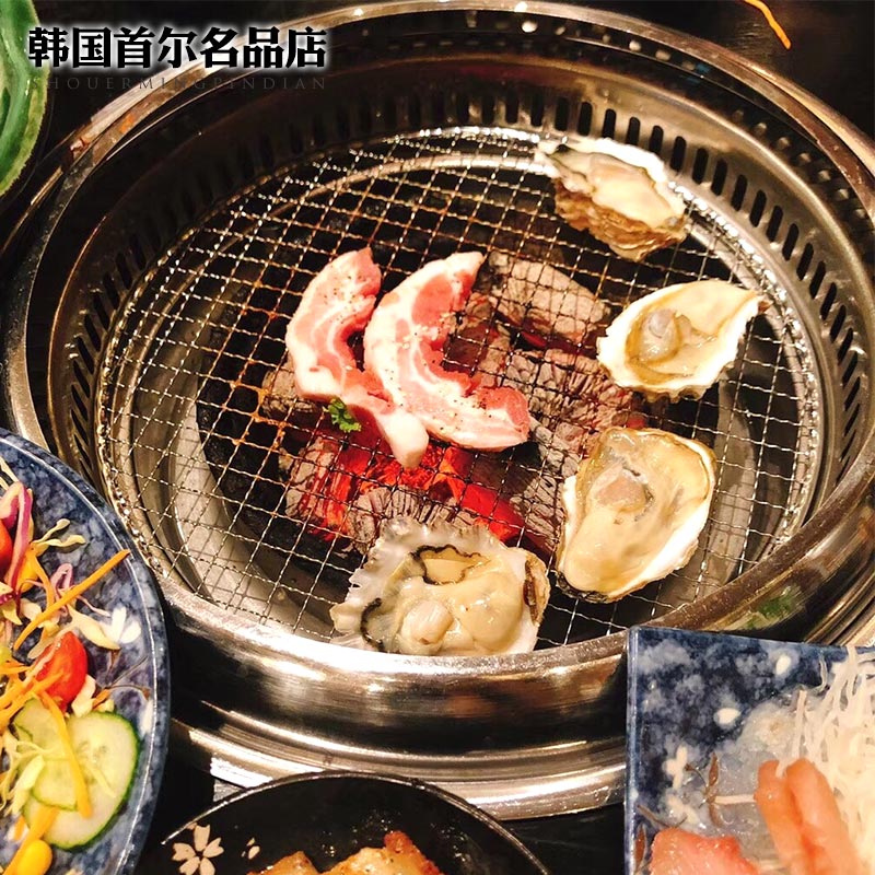 韩式下排烟炭烤炉商用圆形烧烤炉大号木炭烤肉炉镶入式烧烤锅炉具