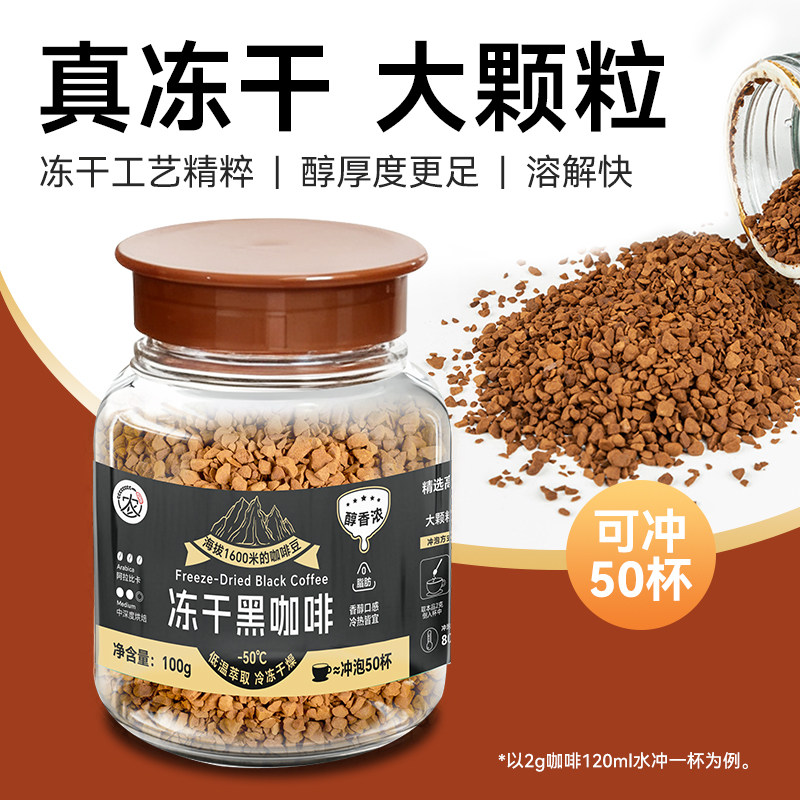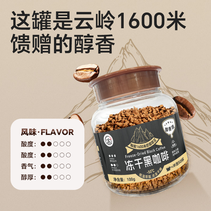 云南小粒冻干黑咖啡速溶美式咖啡0脂肪精品阿拉比卡中烘正品