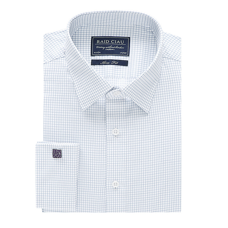 法式衬衫男长袖商务免烫纯棉格子立领新郎正装男士西装袖扣衬衣男