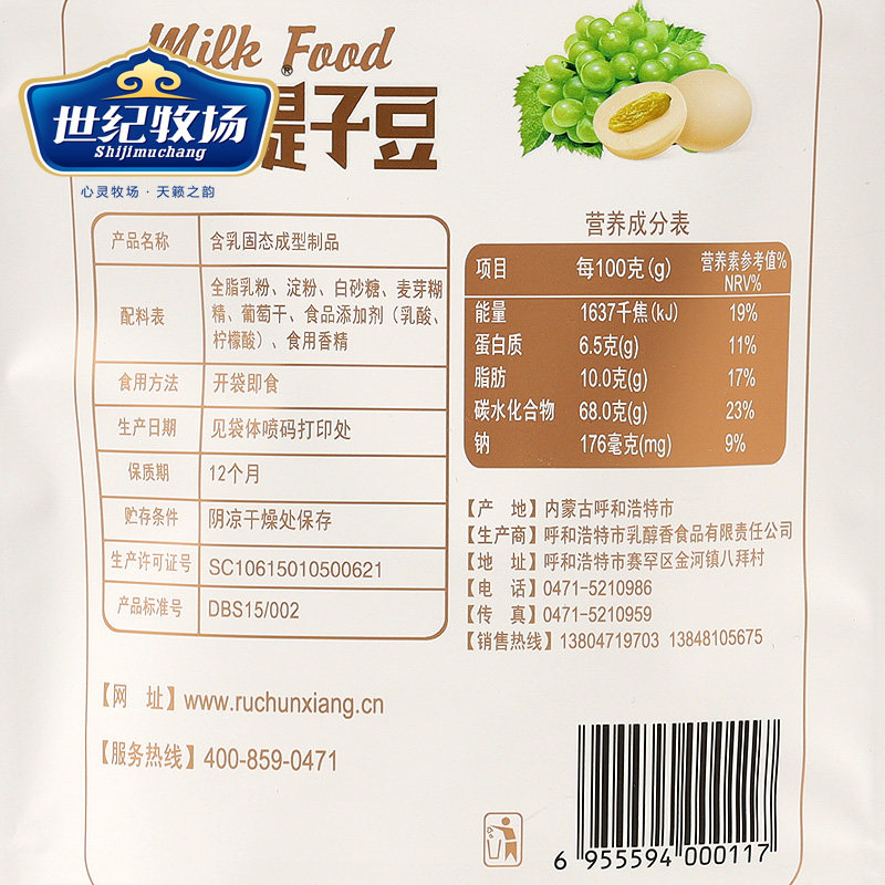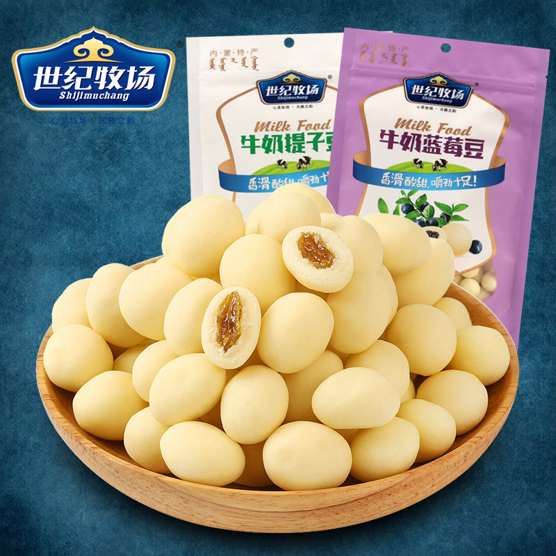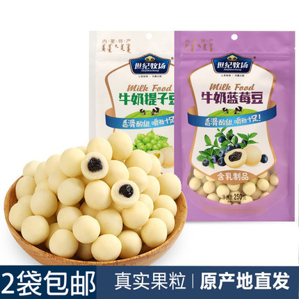 世纪牧场牛奶提子豆250g夹心奶豆内蒙古特产奶酪儿童零食葡萄蓝莓
