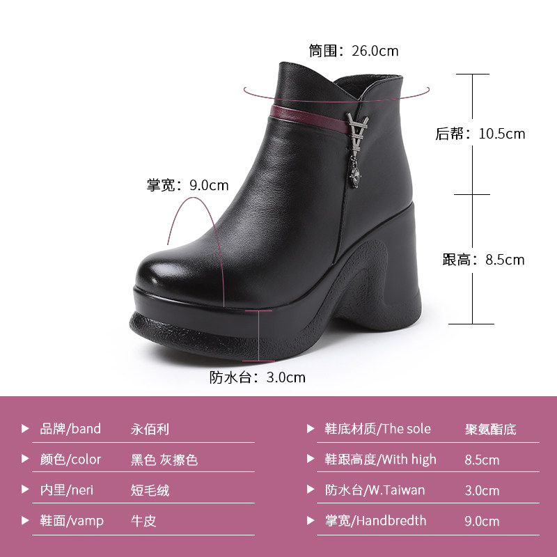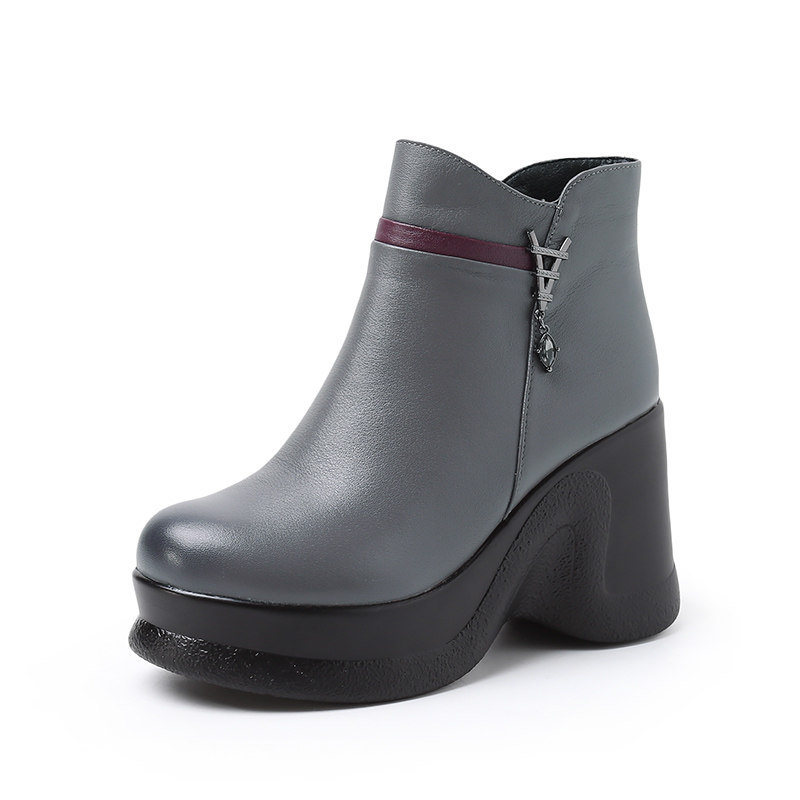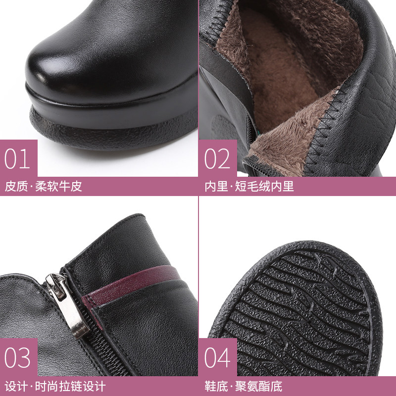 厚底牛皮女鞋2025秋冬新款真皮休闲坡跟短靴圆头松糕女皮鞋女靴