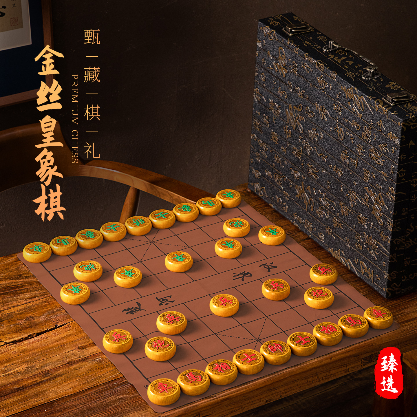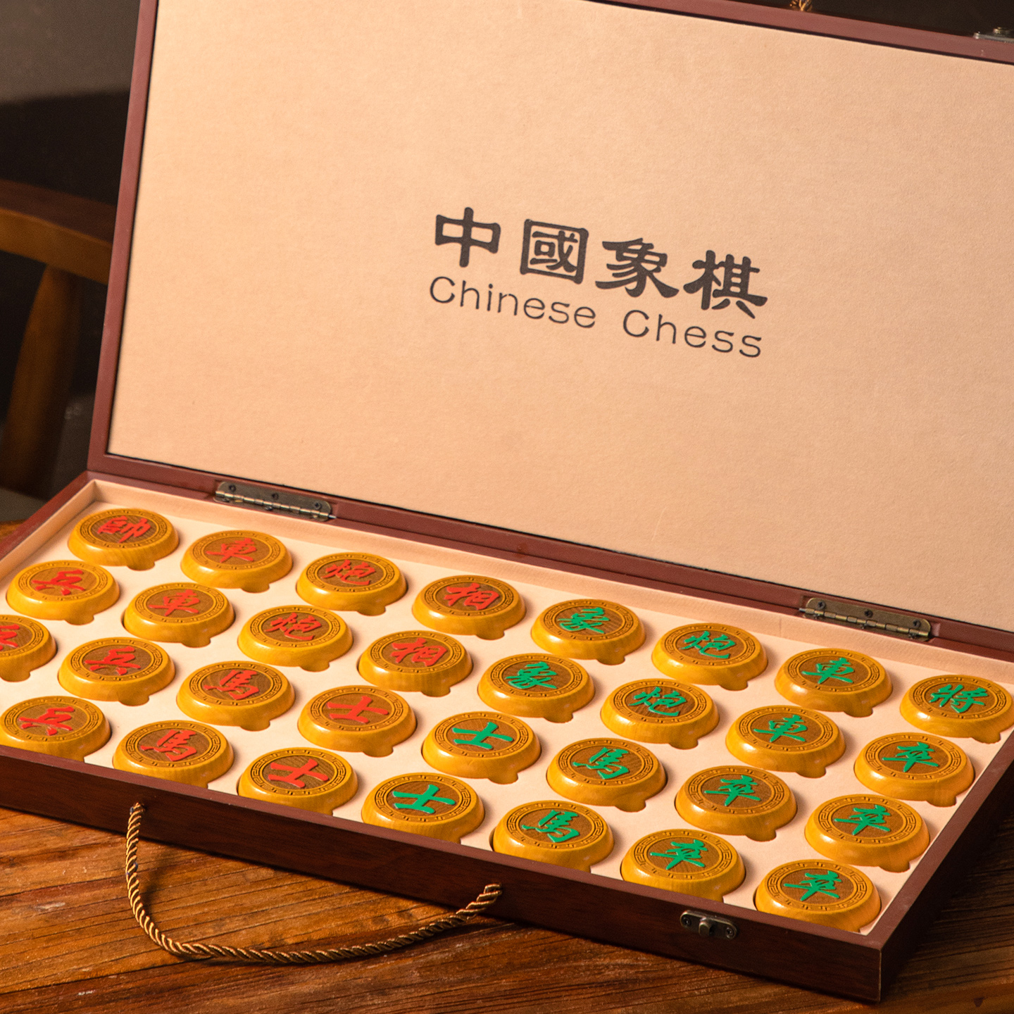 高档中国象棋带可折叠实木棋盘棋子老人专用成人小学生大号送礼