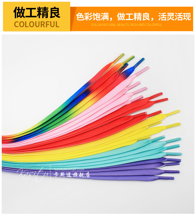 帆布鞋鞋带七彩韩版百搭小白鞋ins男女个性彩色鸳鸯彩虹渐变鞋绳