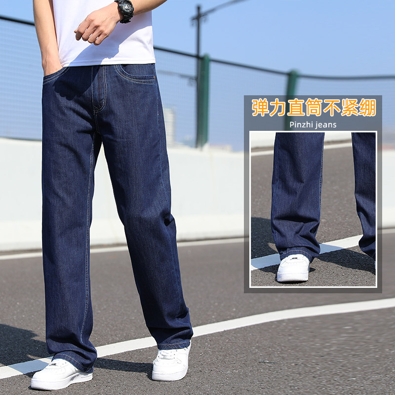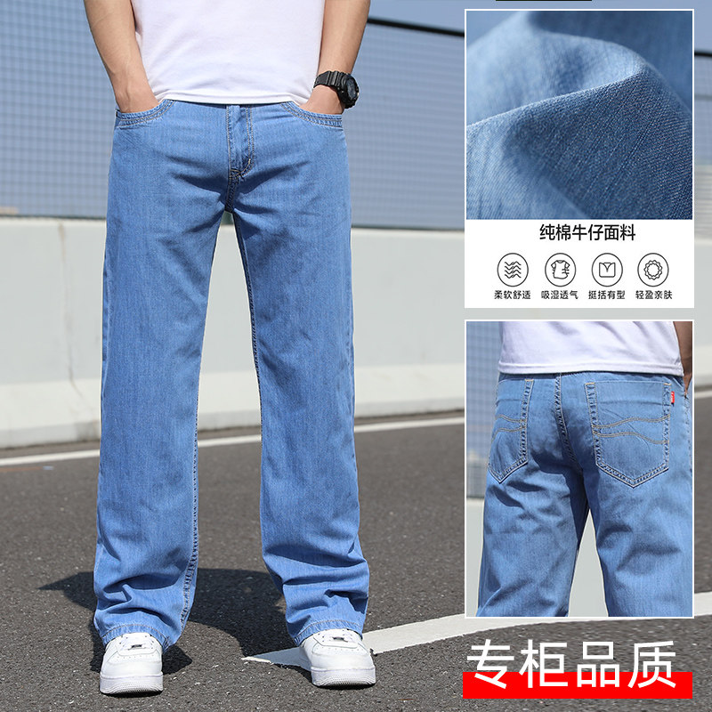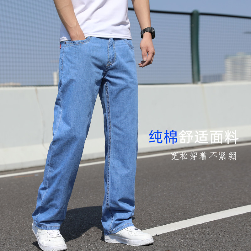 牛仔裤男夏季裤子男士直筒宽松超薄牛仔长裤阔腿裤大码胖子裤子男