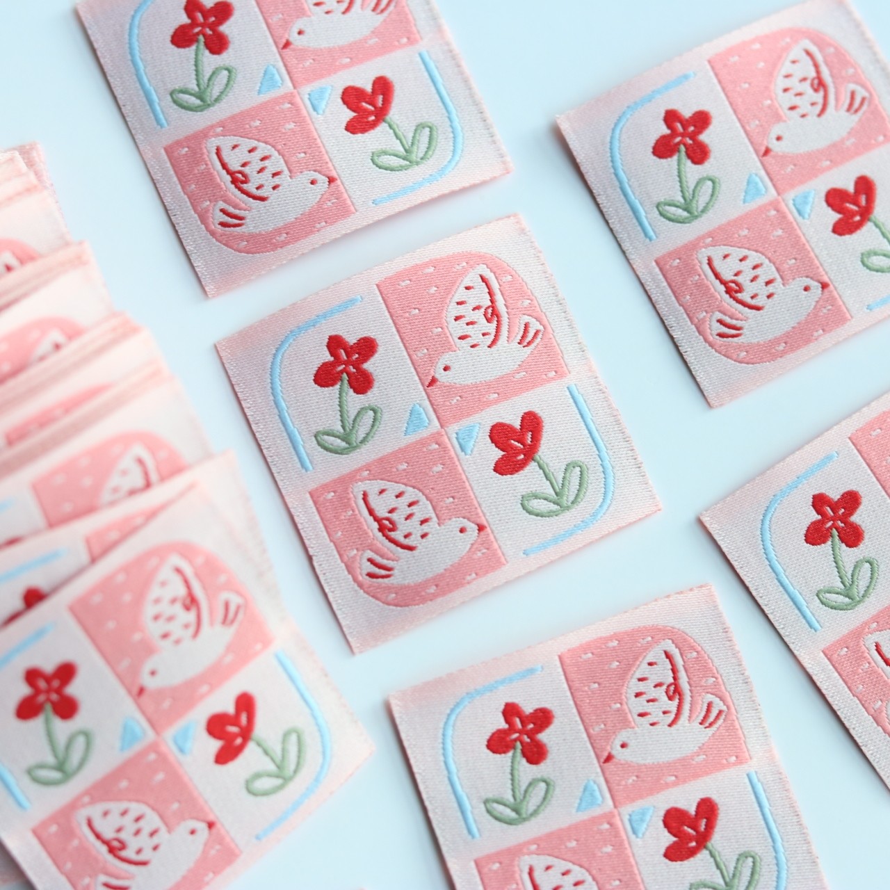 飞鸟与自然12小鸟卡通织唛商标布标领标源头工厂服装辅料定制现货