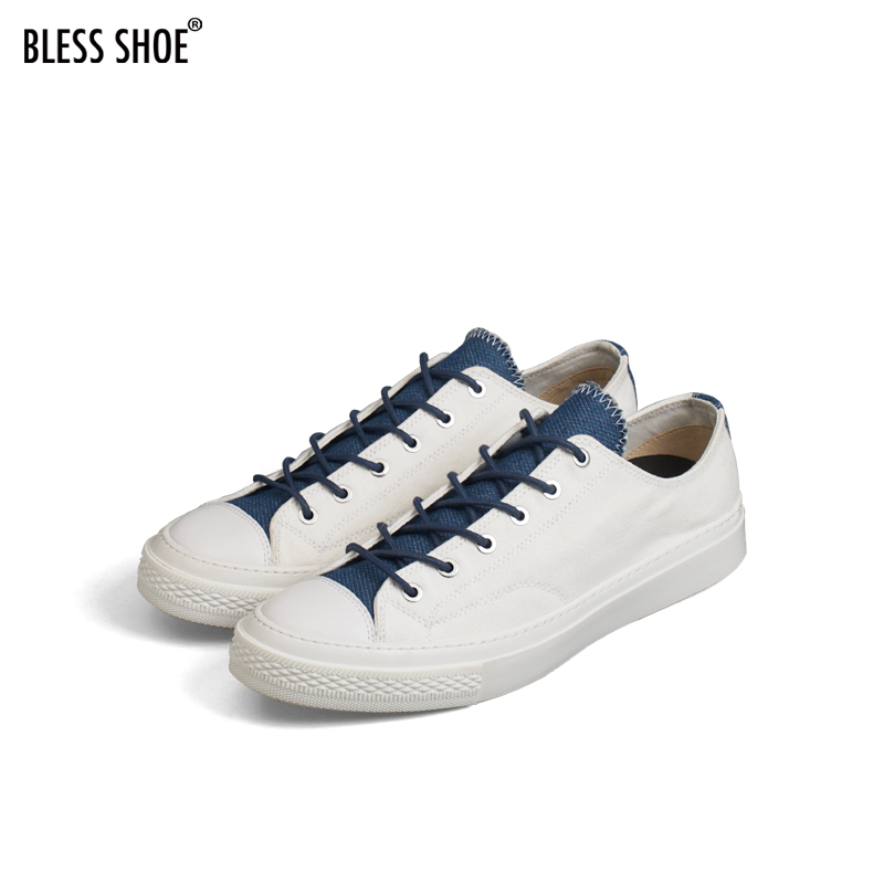 BLESS SHOE 21ss indigo蓝染系列夏季白色低帮帆布鞋男女款手工鞋