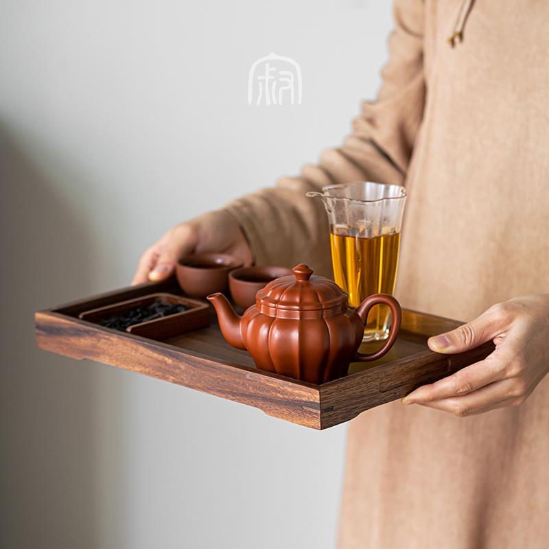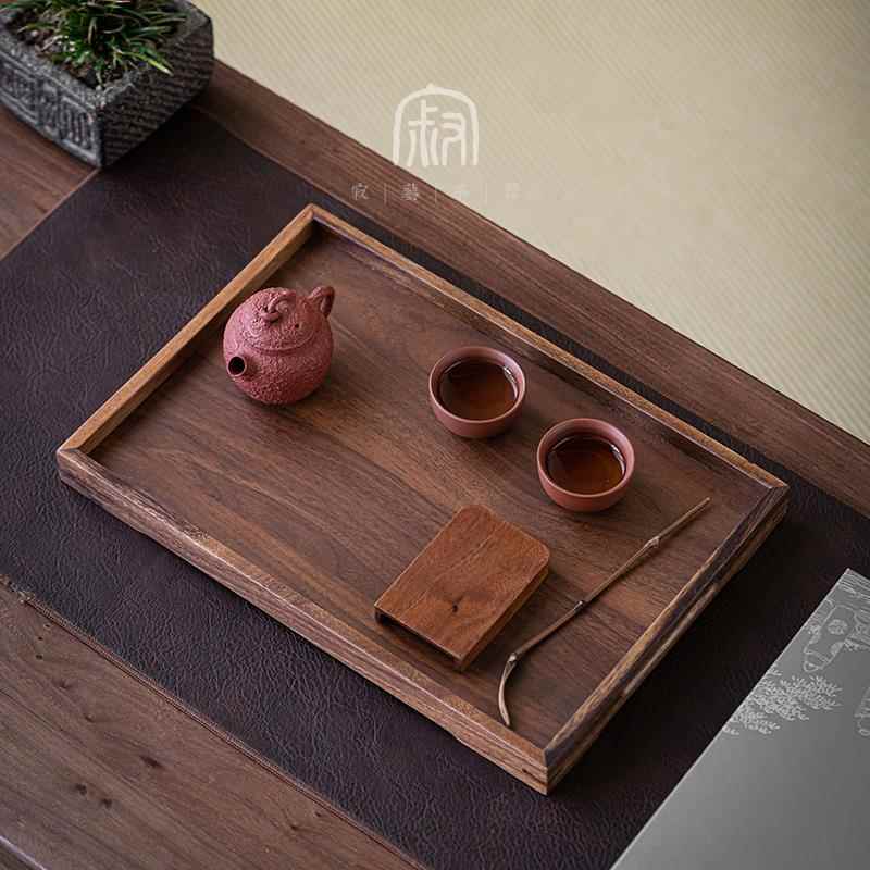 黑胡桃木长形茶托盘茶具茶杯收纳干泡小茶盘家用酒店实木茶奉定制
