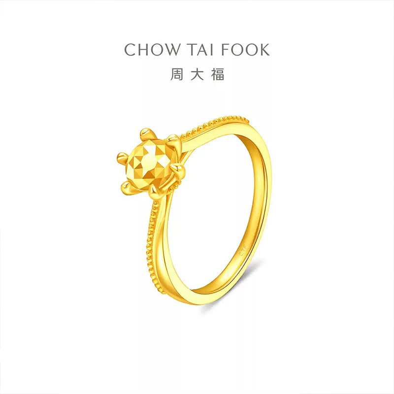 周大福圆形六爪足金黄金钻石造型戒指女士计价EOF1535订婚戒指