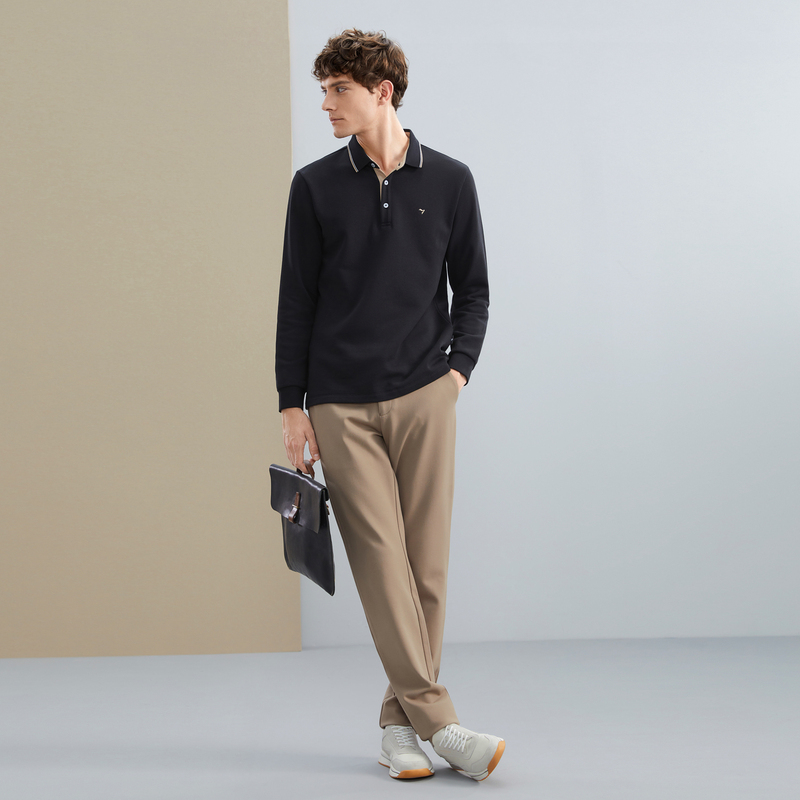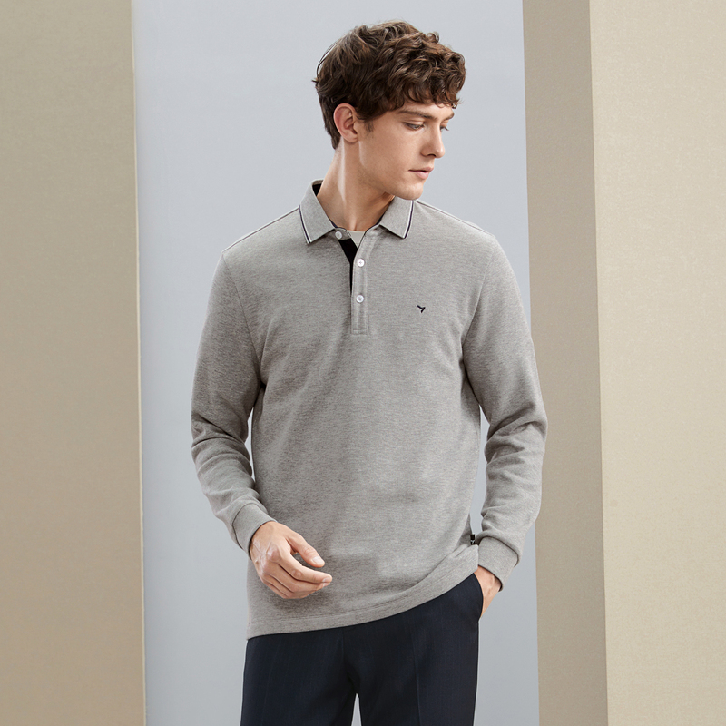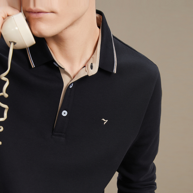 【暖燚绒】柒牌抗菌长袖polo衫男士厚款商务百搭撞色翻领T恤