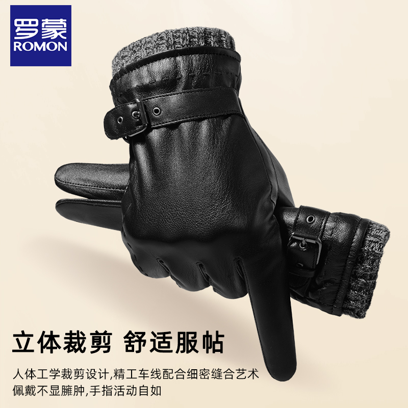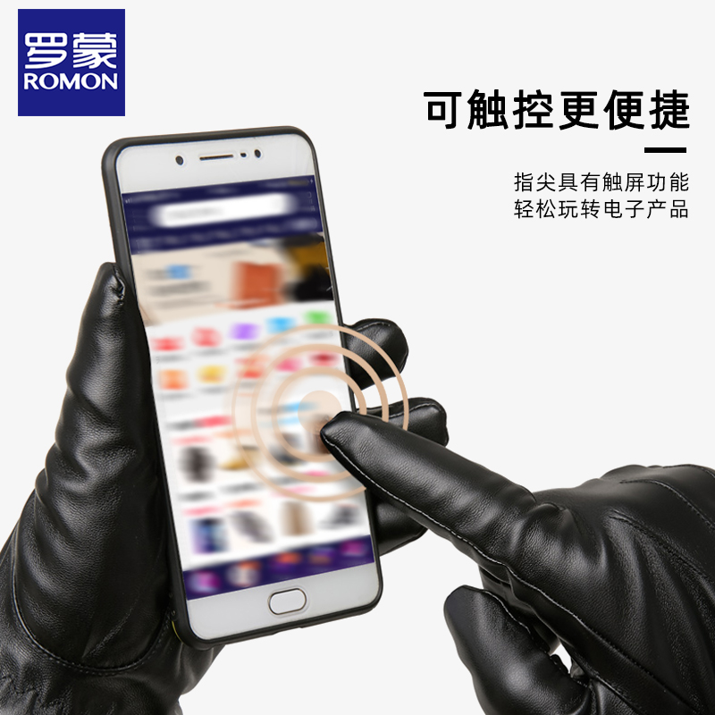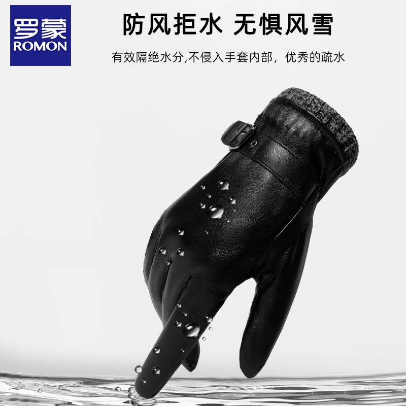 罗蒙皮手套男士秋冬季户外骑行加绒触屏开车摩托车防风保暖手套ND