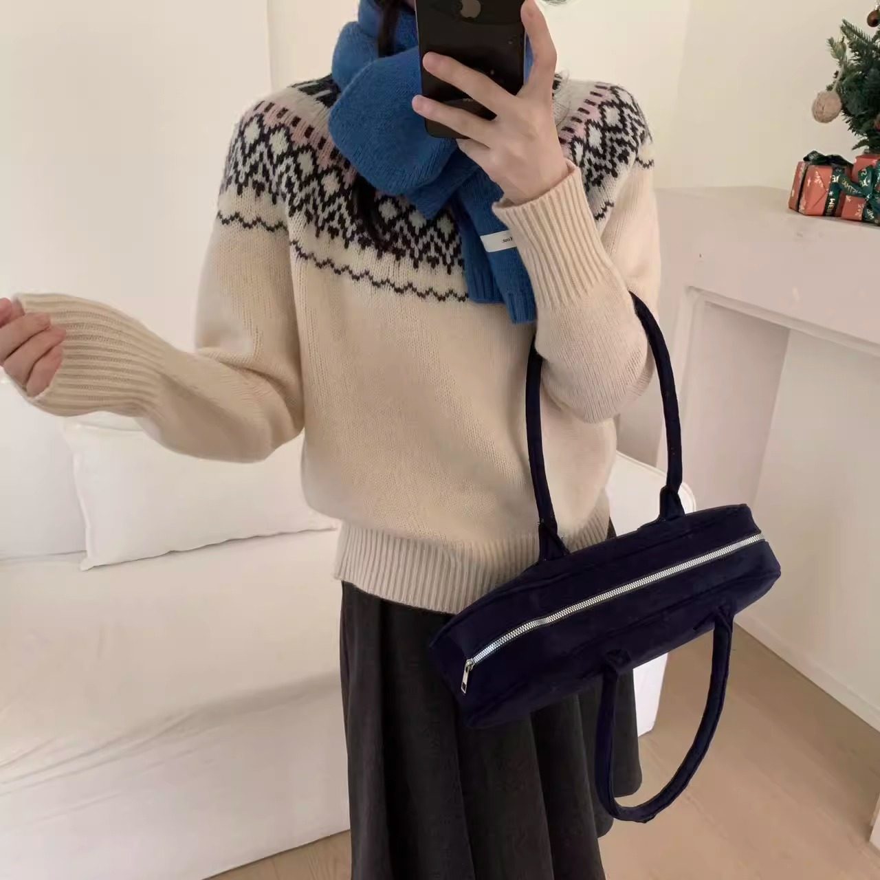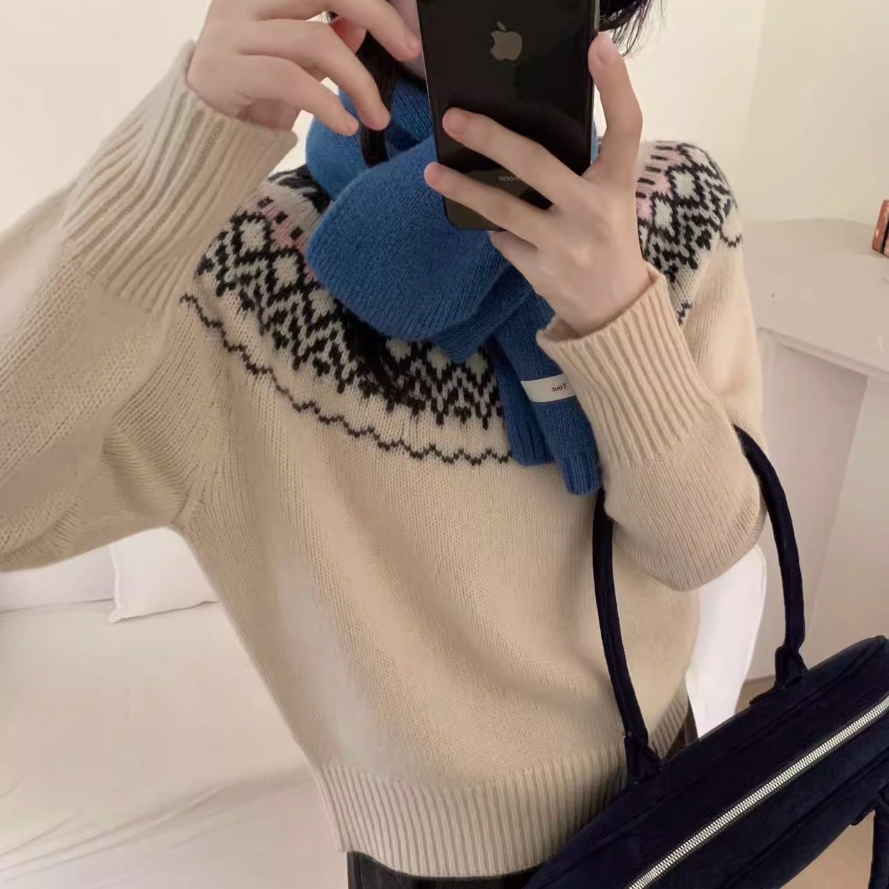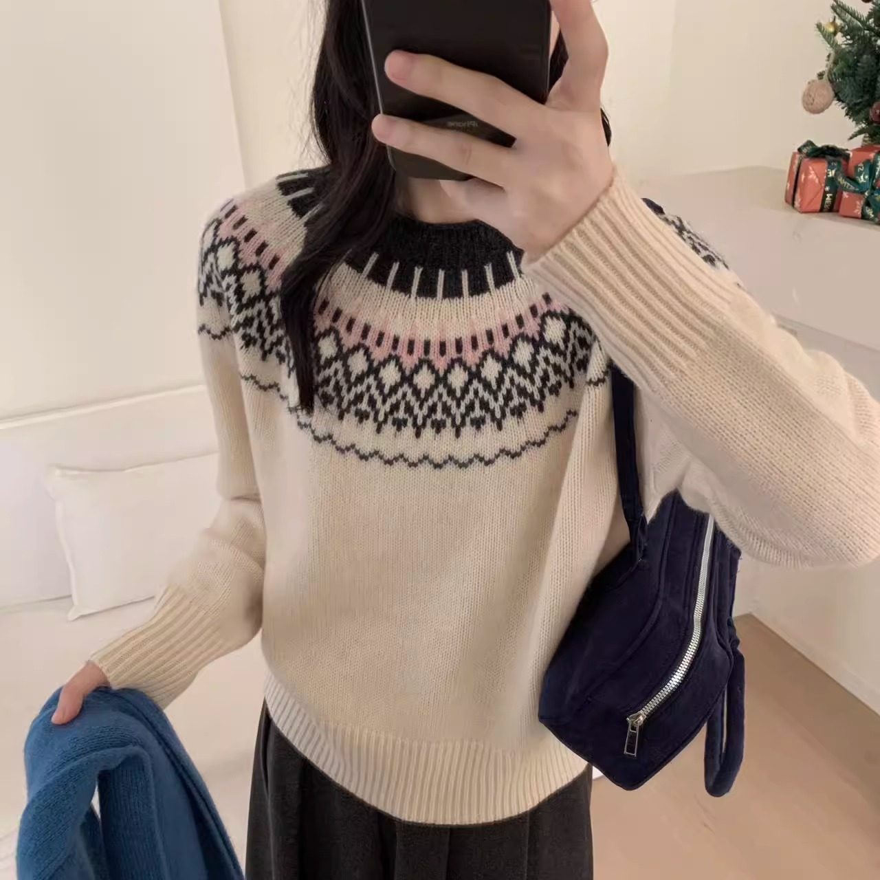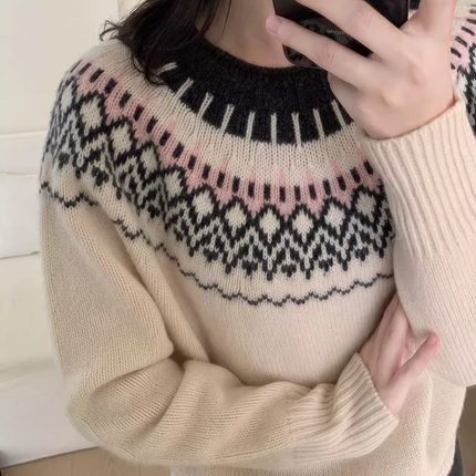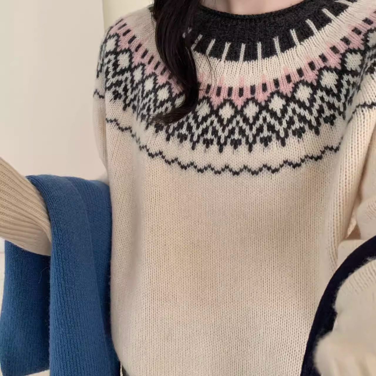 BADX正品圆领费尔岛羊毛毛衣女2025冬季宽松套头针织衫打底上衣潮