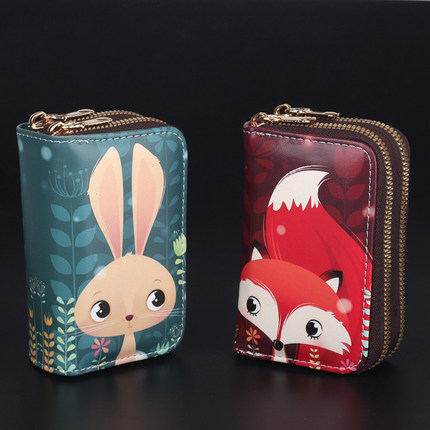 双拉链卡包女孩可爱大容量卡夹驾驶证件卡套零钱包动漫印花多卡位
