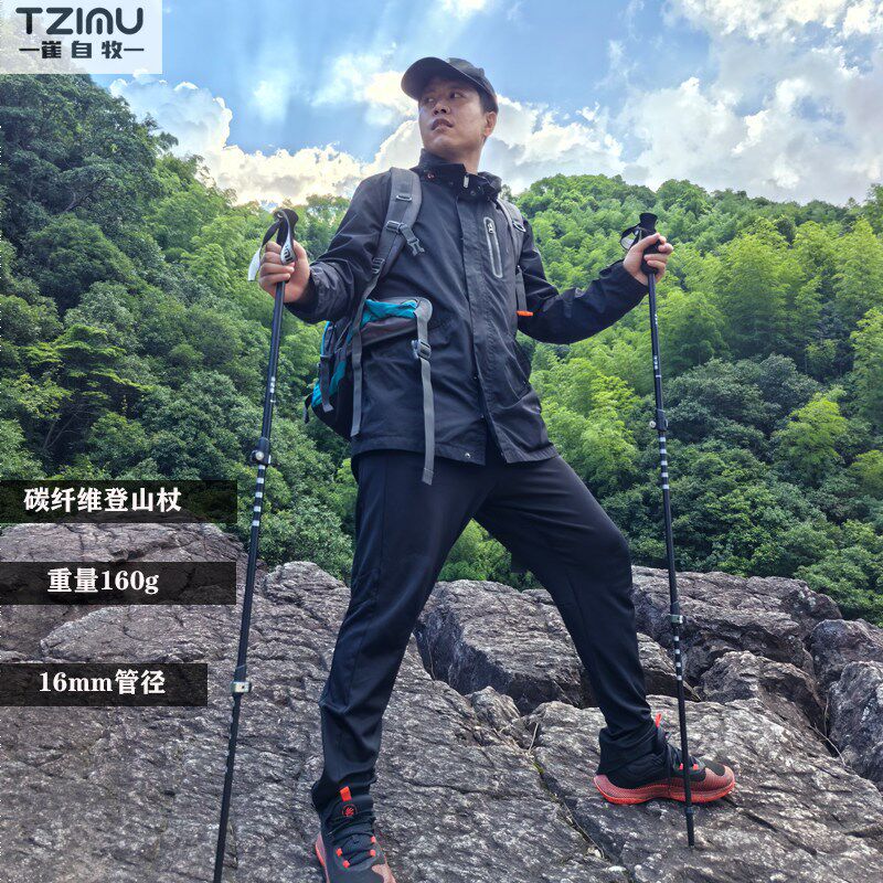 崔自牧登山杖超轻碳纤维伸缩户外徒步爬山杖三节结实金属卡扣徒步