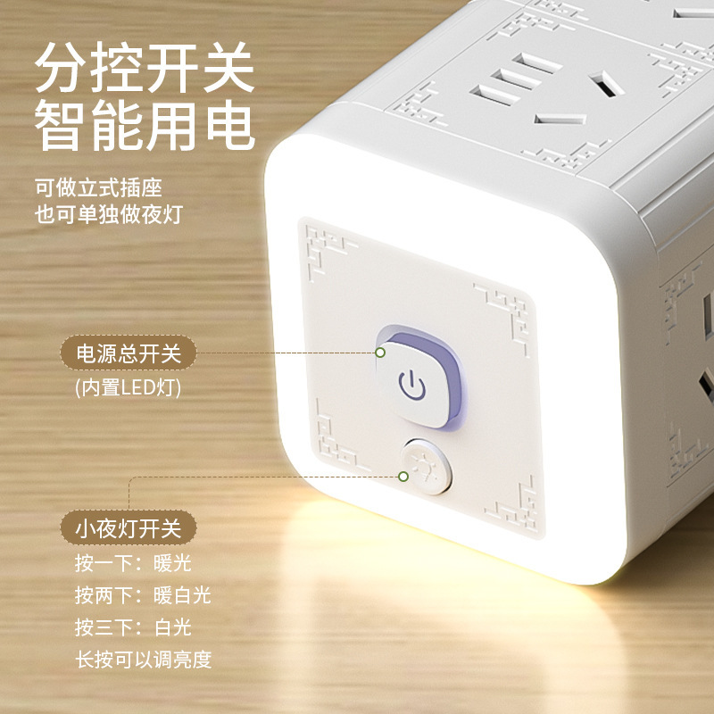 小米有品生态链多孔插位立式插座带USB多功能插板魔方带线排插排