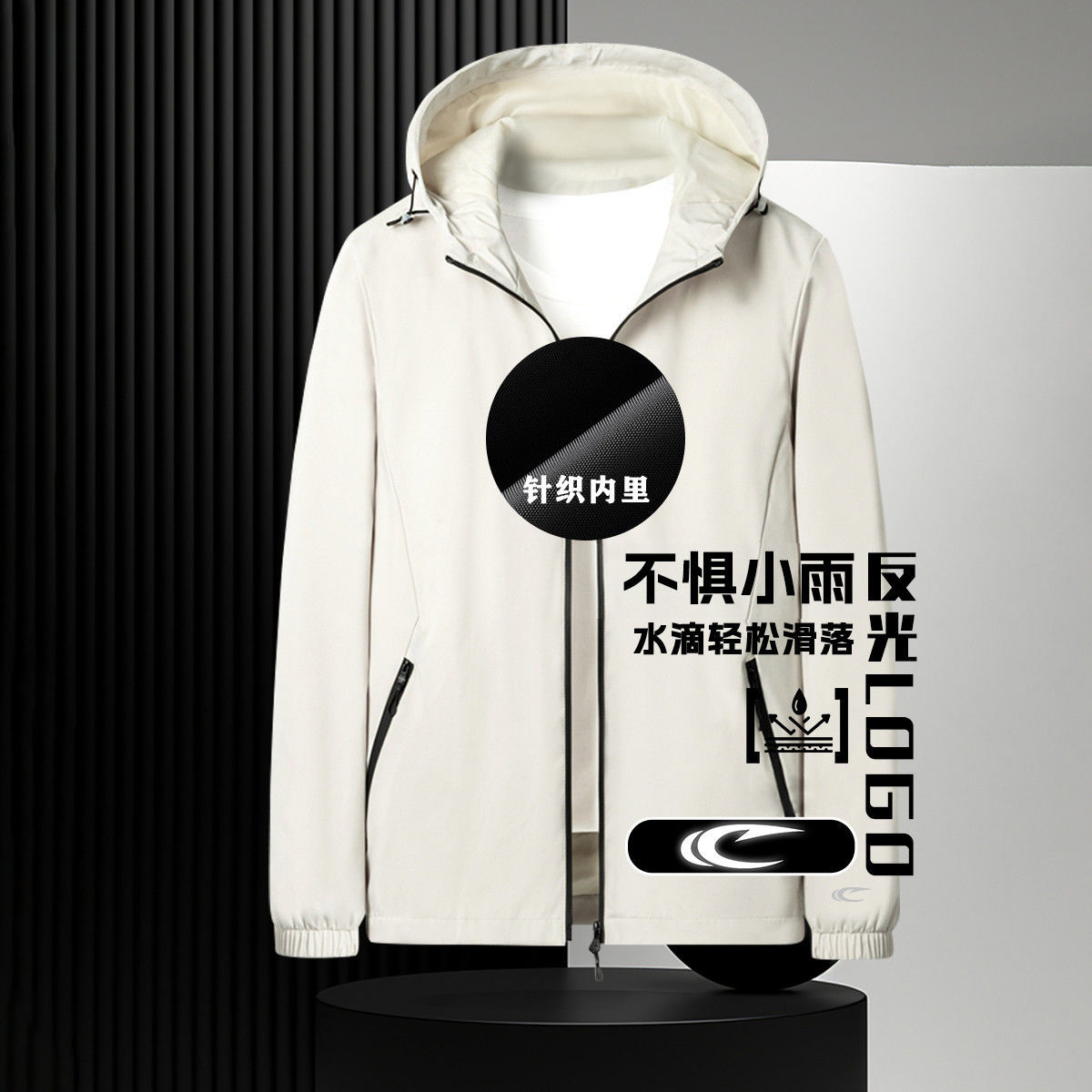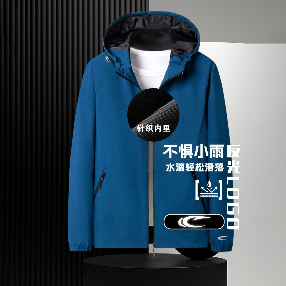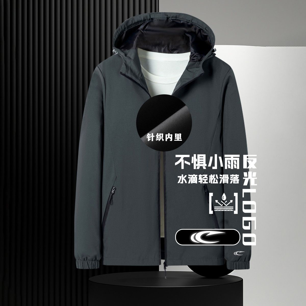 赛琪反光防风单层锋衣男式纯色户外皮肤衣夹克钓鱼连帽运动外套男