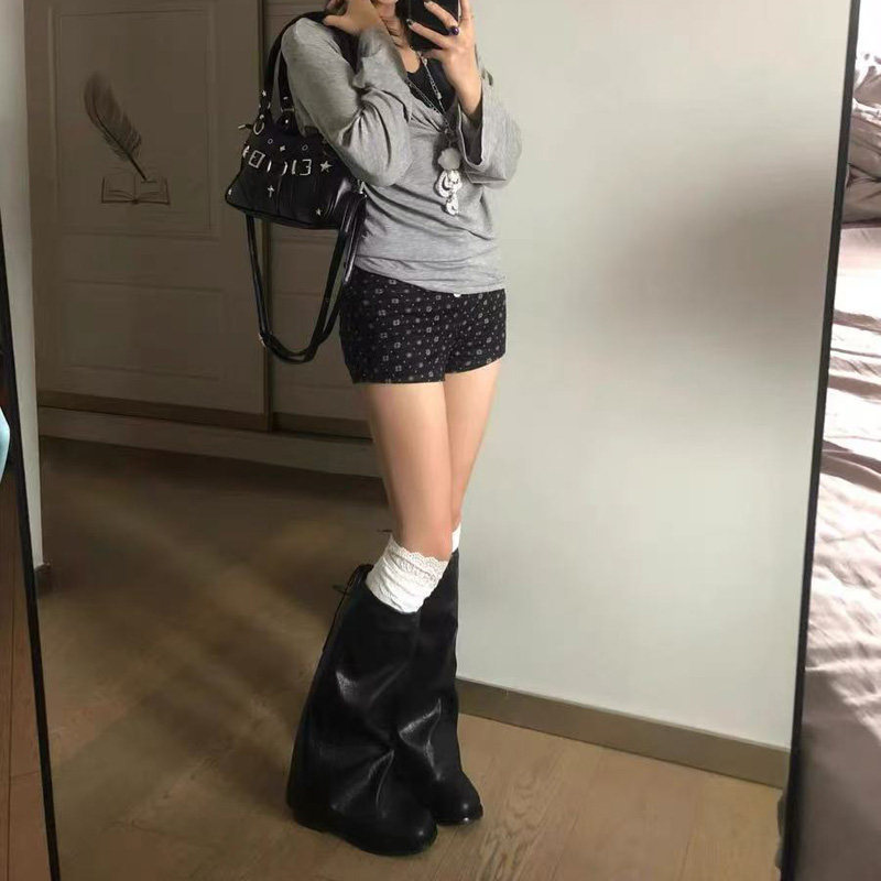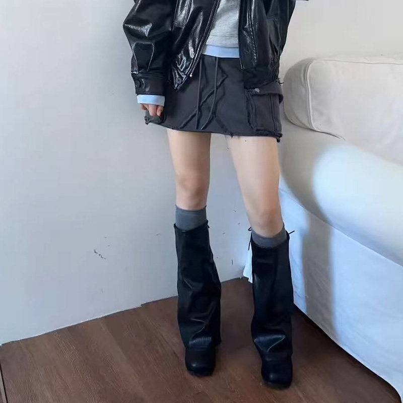 花恋曲复古堆堆长筒靴粗跟显瘦