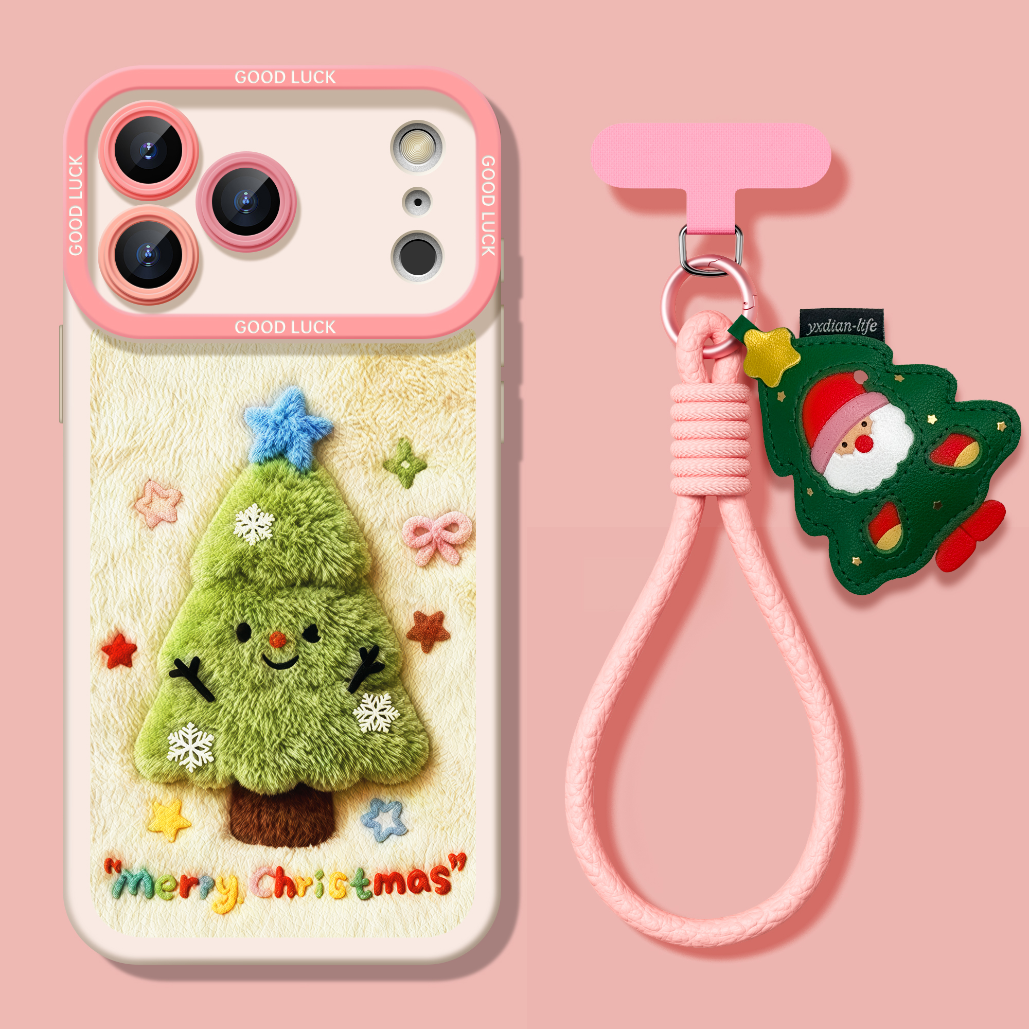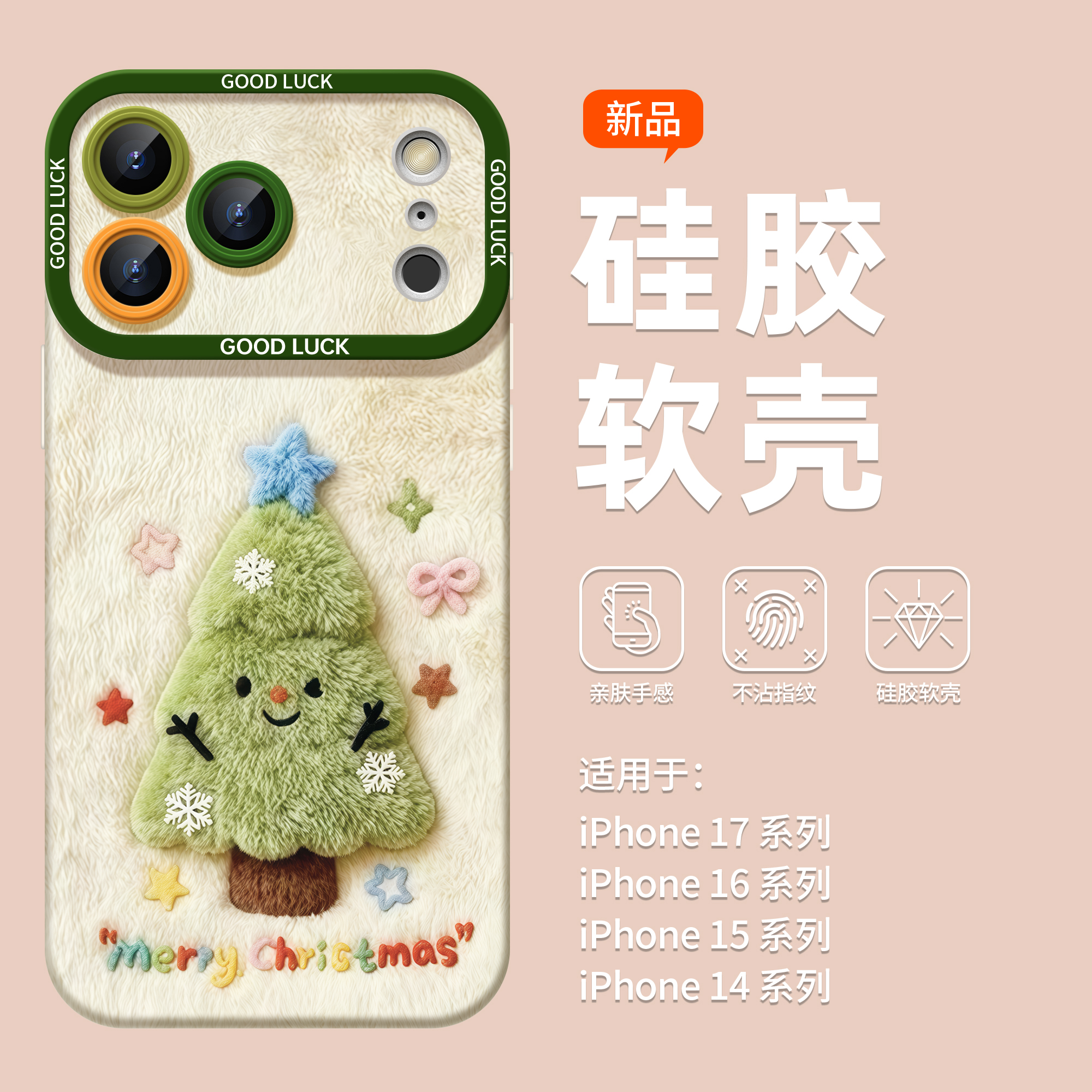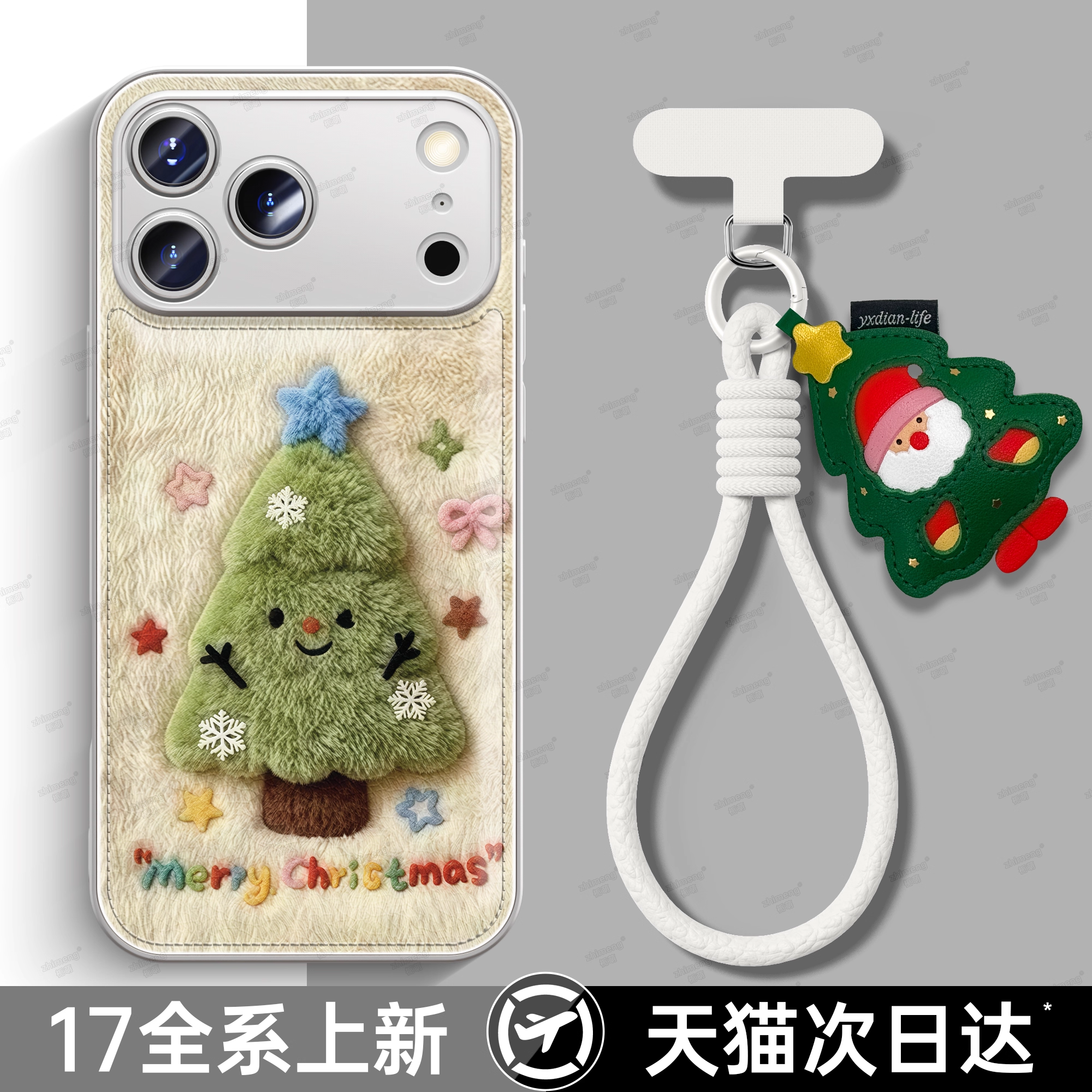 适用苹果17promax手机壳新款女iPhone17超好看16pro小羊皮质15带手绳软壳14pro毛绒圣诞树13秋冬防摔保护套伟