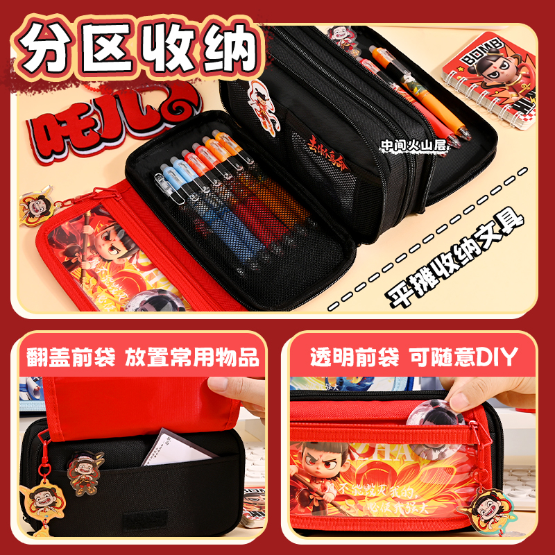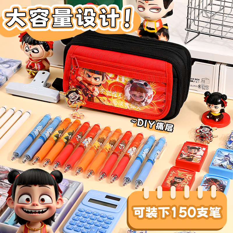哪吒笔袋多功能简约铅笔盒2025新款超火大容量高颜值敖丙男孩款儿童学习用品小学生初中痛包文具袋多层文具盒