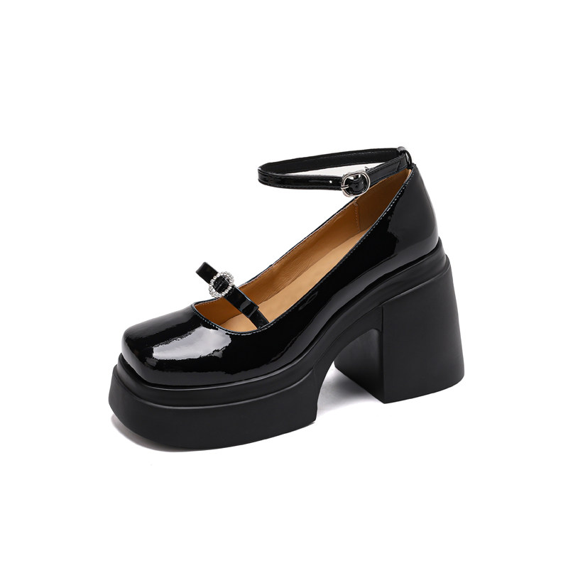 防水台高跟鞋女2026春季新款洛丽塔蝴蝶结单鞋真皮浅口厚底鞋子