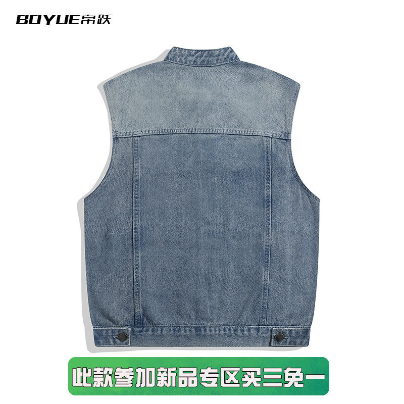 BOYUE帛跃做旧水洗拉链牛仔马甲
