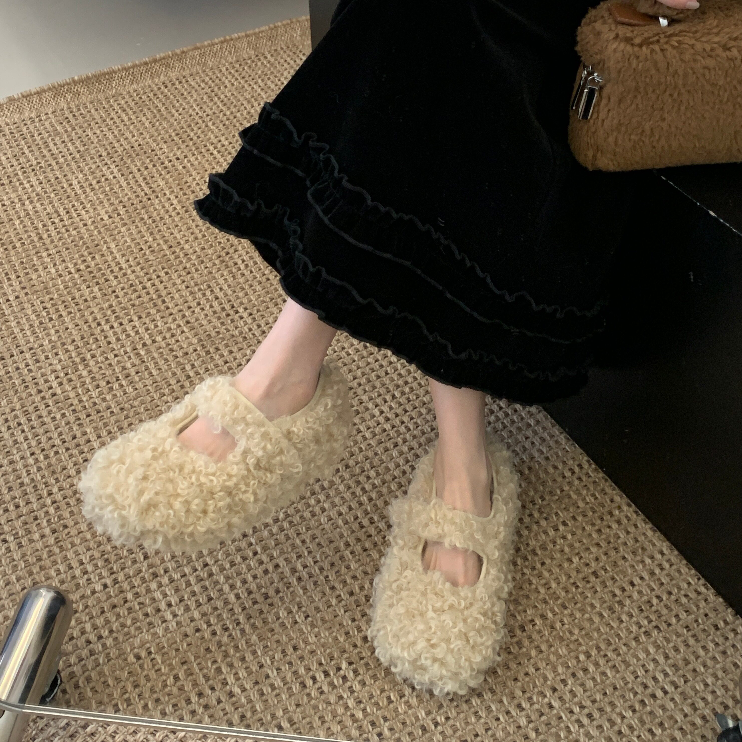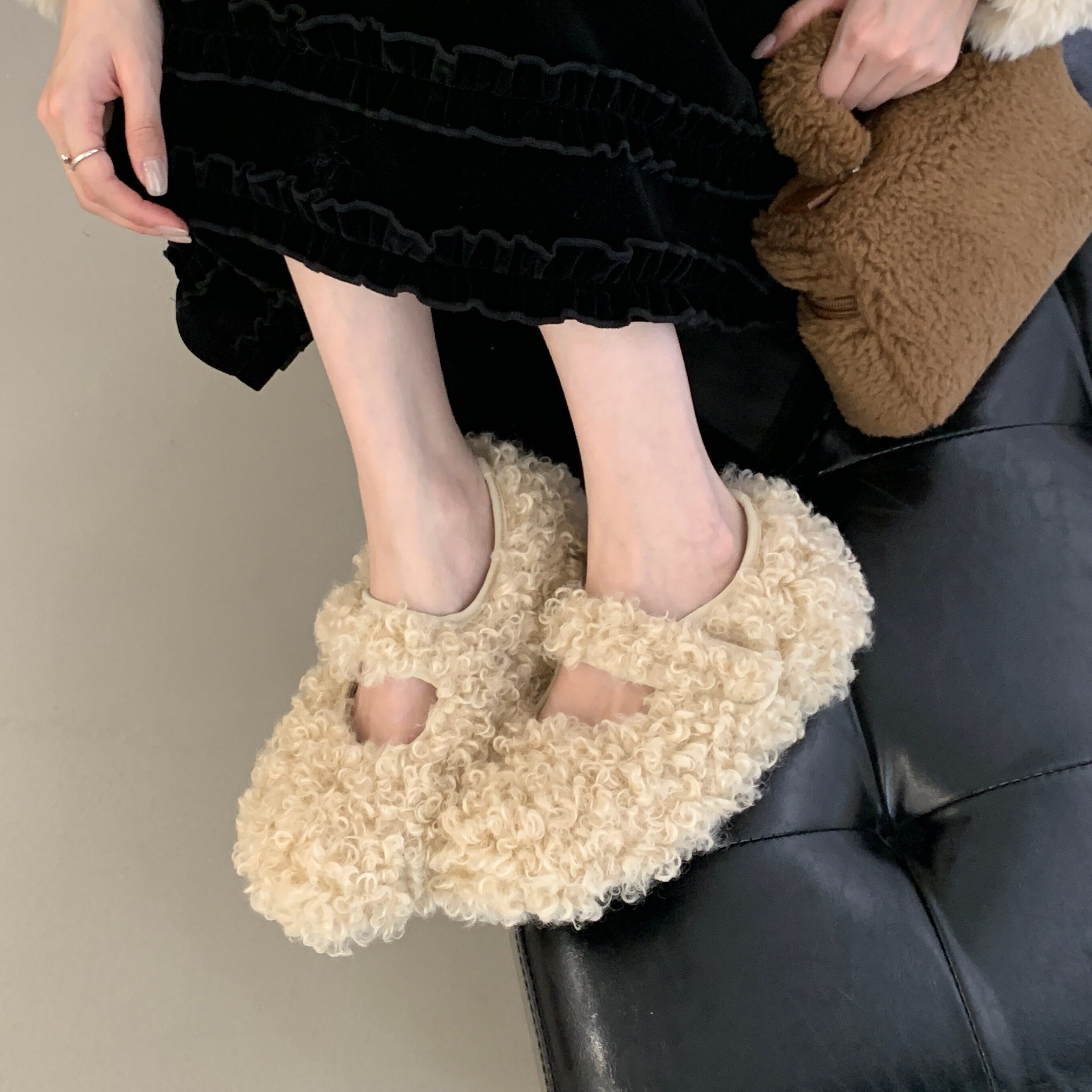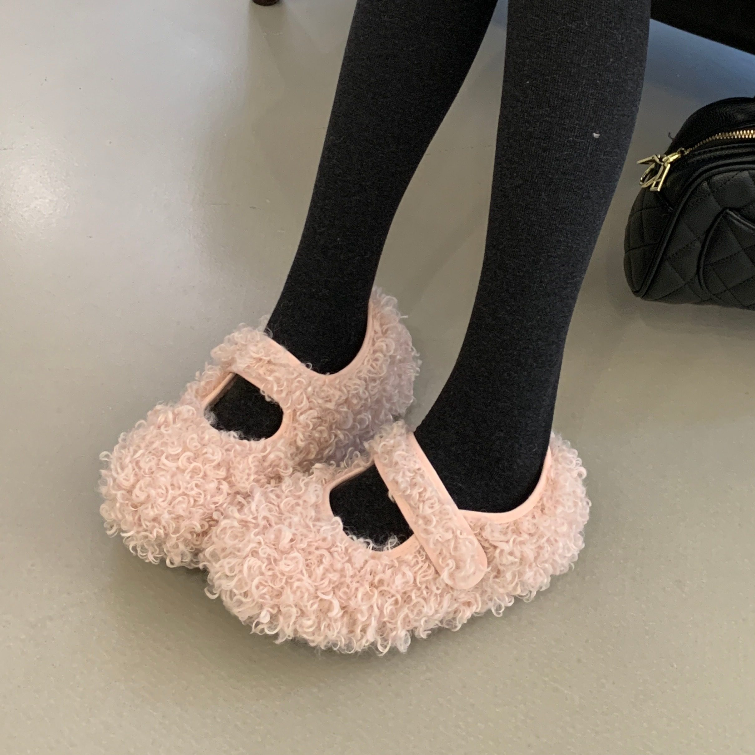 5CM内增高羊羔毛保暖玛丽珍鞋