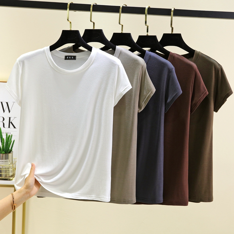 春夏薄款纯色宽松女装莫代尔圆领简约短袖T恤胖MM打底衫上衣大码