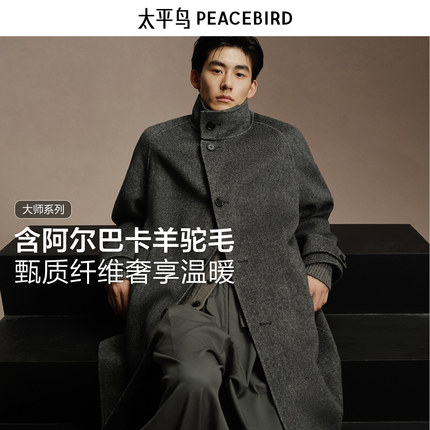 太平鸟男装 休闲毛呢大衣宽松时尚舒适羊毛混纺男士大衣