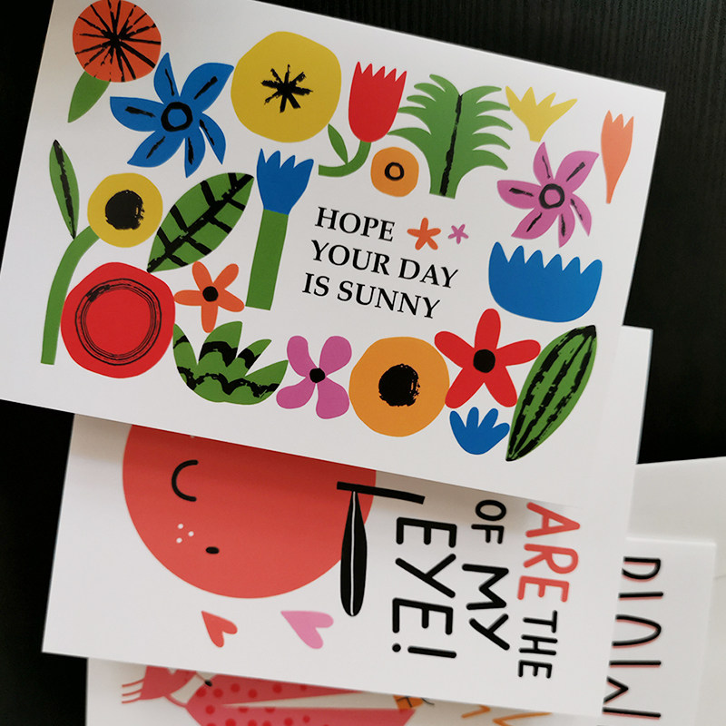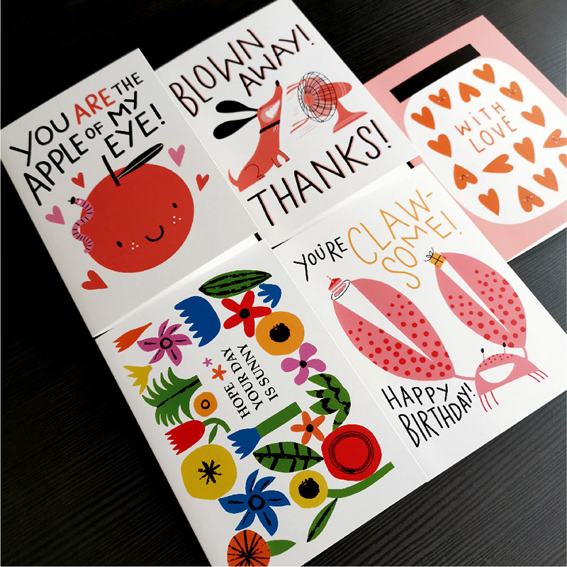 进口风格创意贺卡对折国外插画幽默可爱趣味儿童节日祝福生日卡片