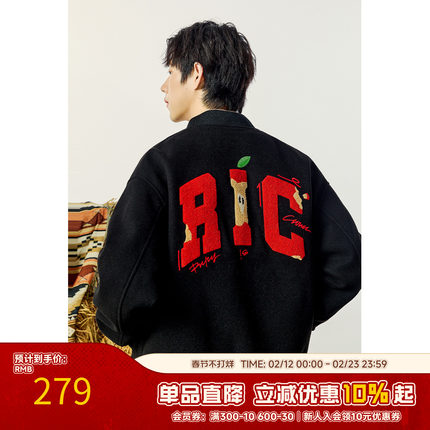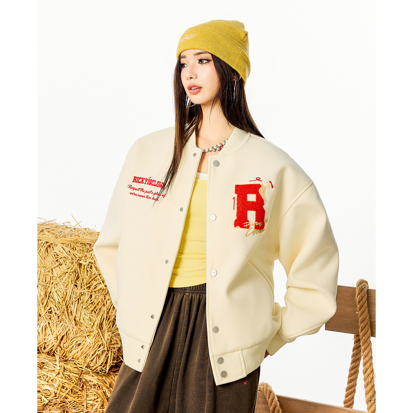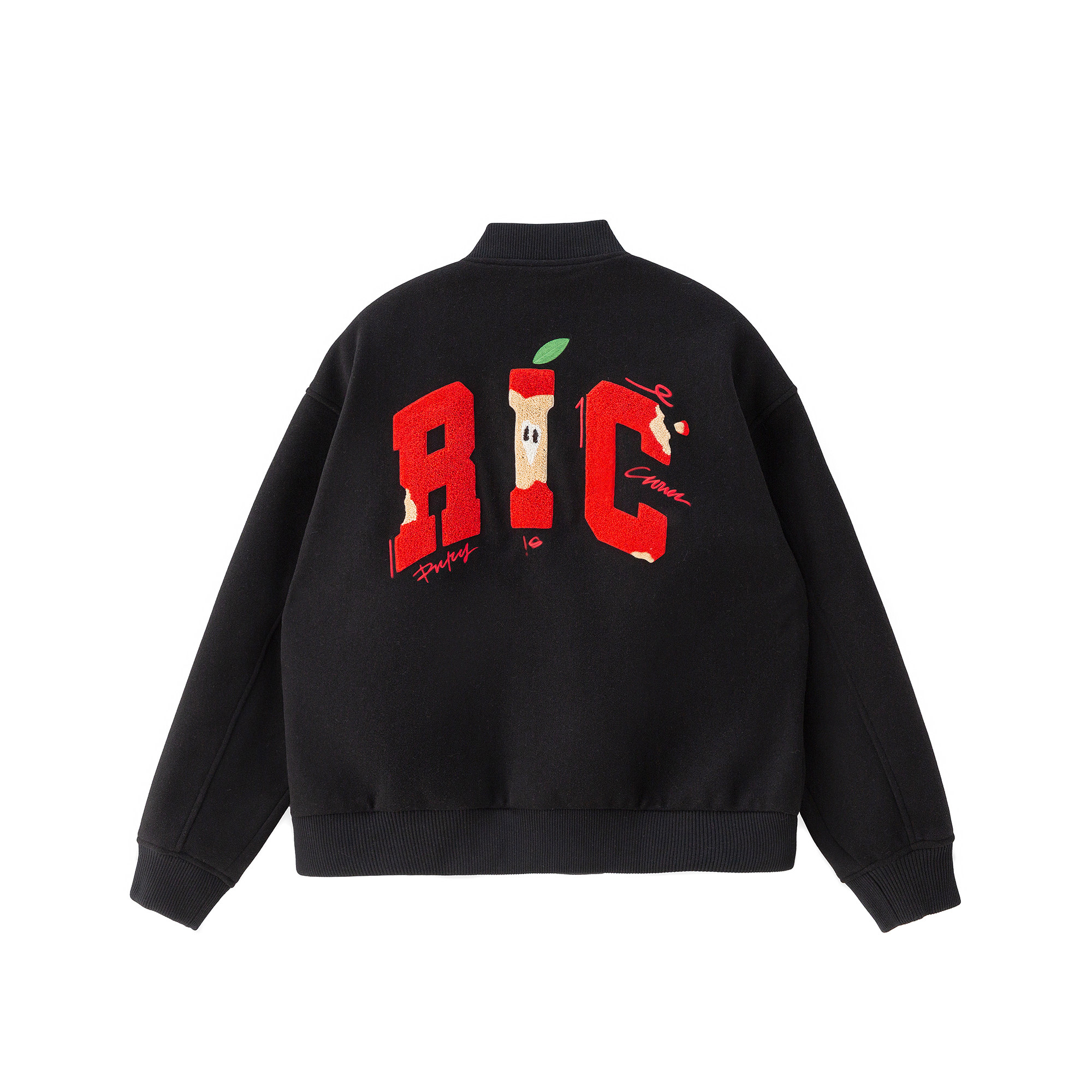 RIC趣味毛巾绣苹果棒球服夹克男2025新款秋季 潮牌宽松情侣外套女