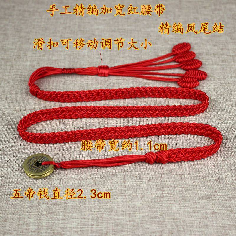 手工精编本命年铜钱红腰带五帝钱红腰链加粗加长红腰绳胖子男女款