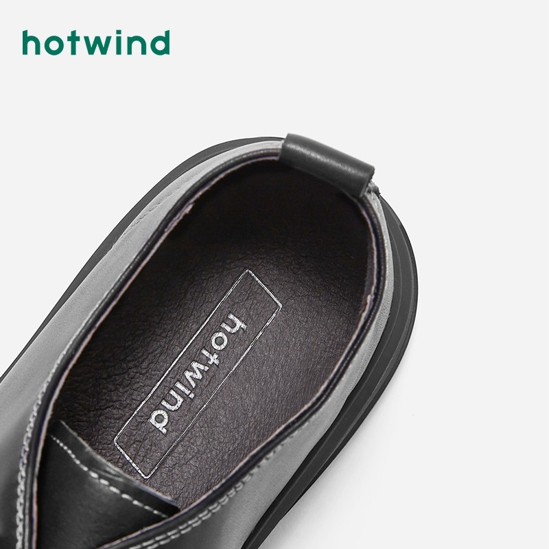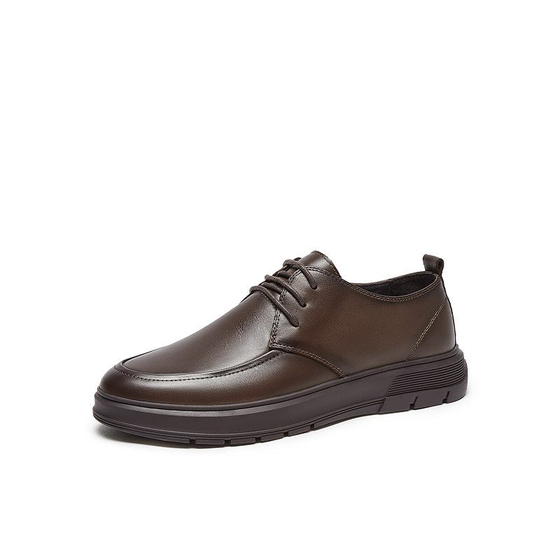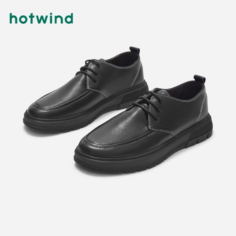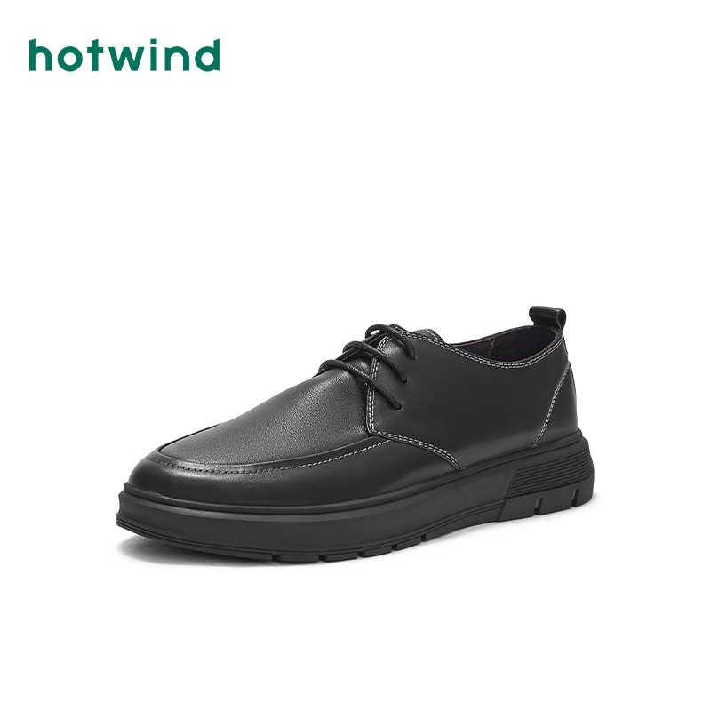热风男鞋春季新款士时尚休闲中帮皮鞋黑色百搭圆头商务正装皮鞋