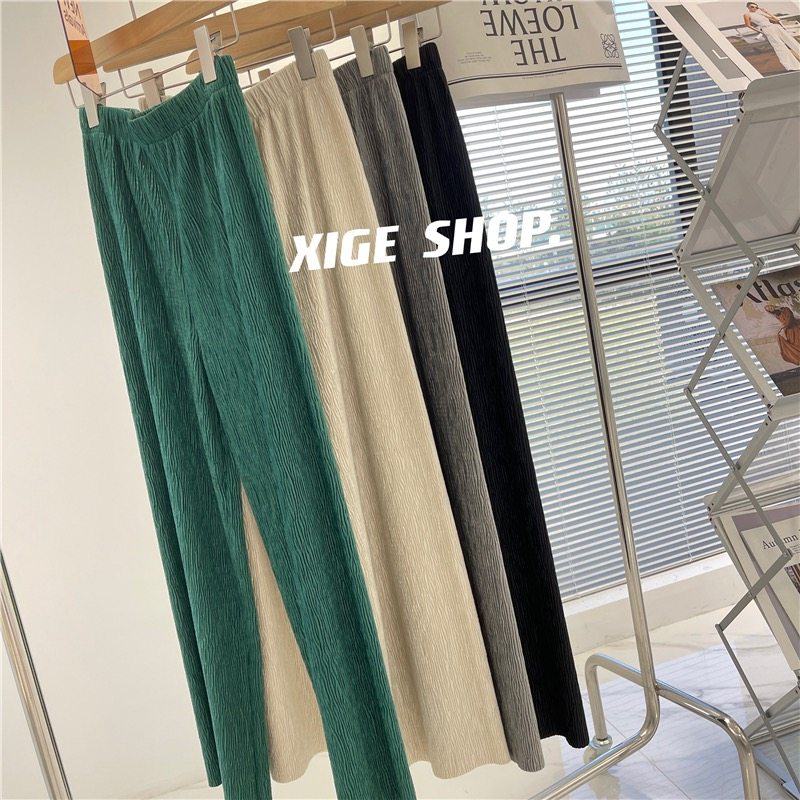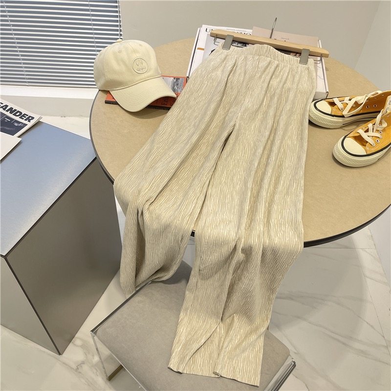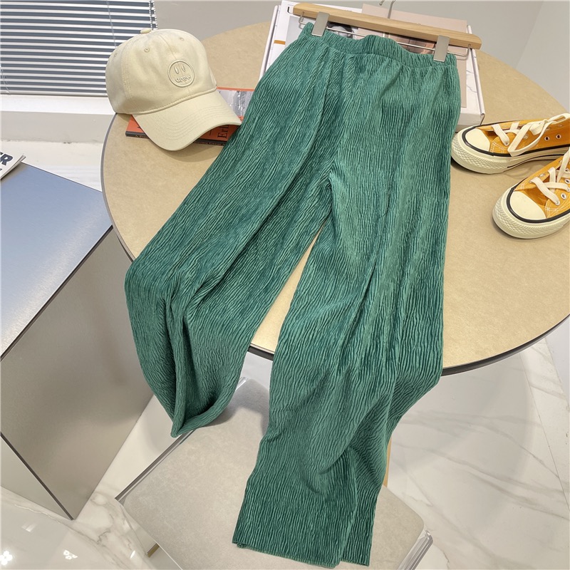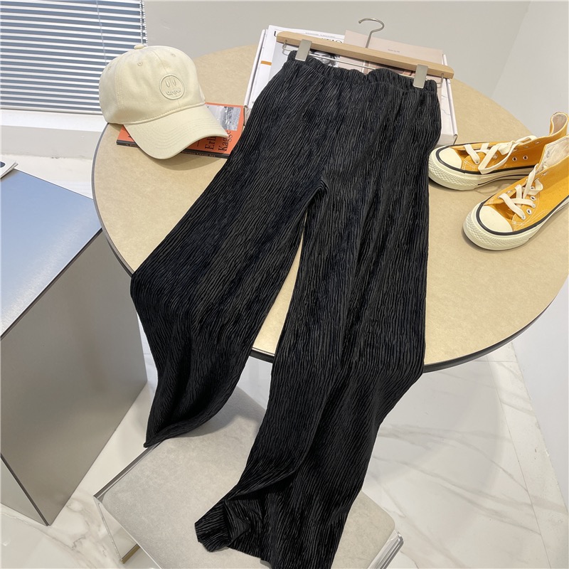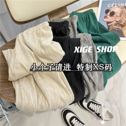 150小矮个子压褶丝绒阔腿裤女春夏高腰显瘦直筒垂感百褶拖地长裤