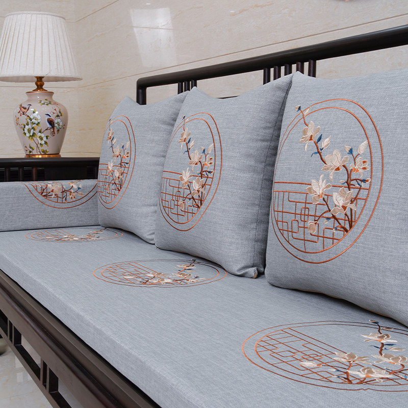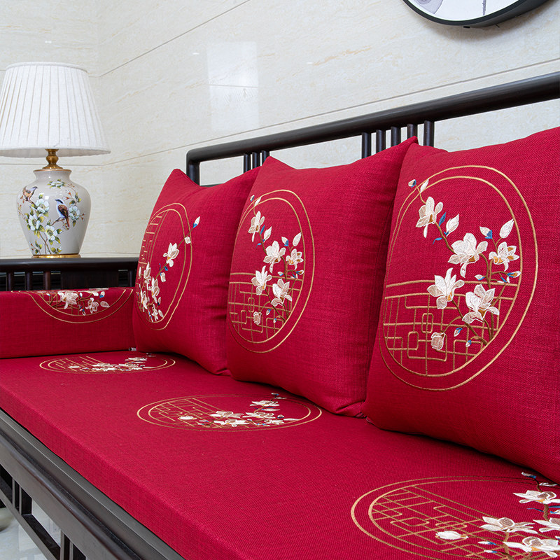 红木沙发坐垫新中式实木家具椅子坐垫加厚海绵沙发垫刺绣防滑定制