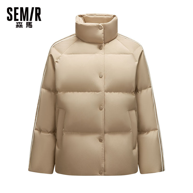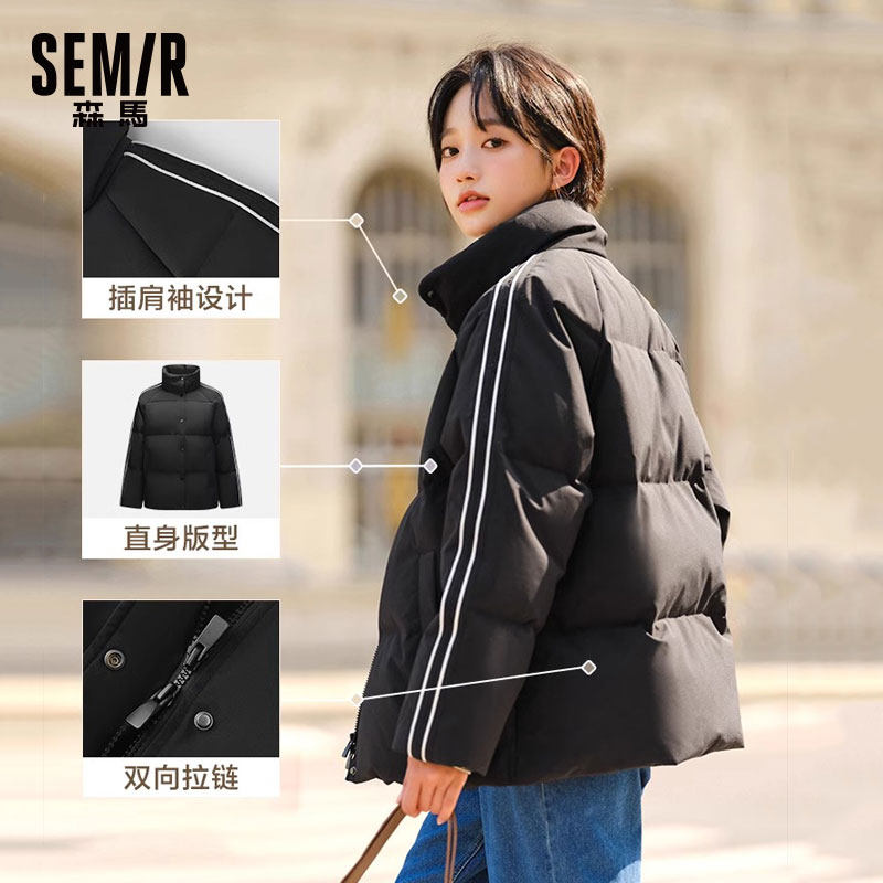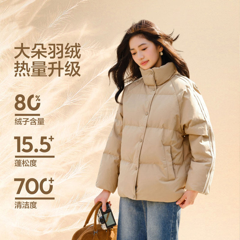 森马羽绒服女立领撞色宽松面包服2025冬季新款小个子三防短款外套