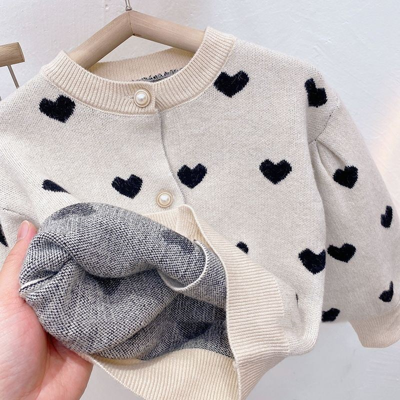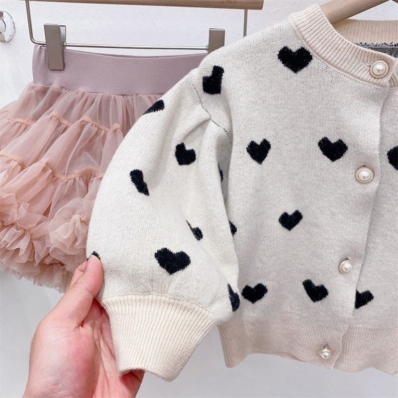 女童针织开衫2025新款童装春秋韩版长袖外套洋气爱心毛衣儿童上衣