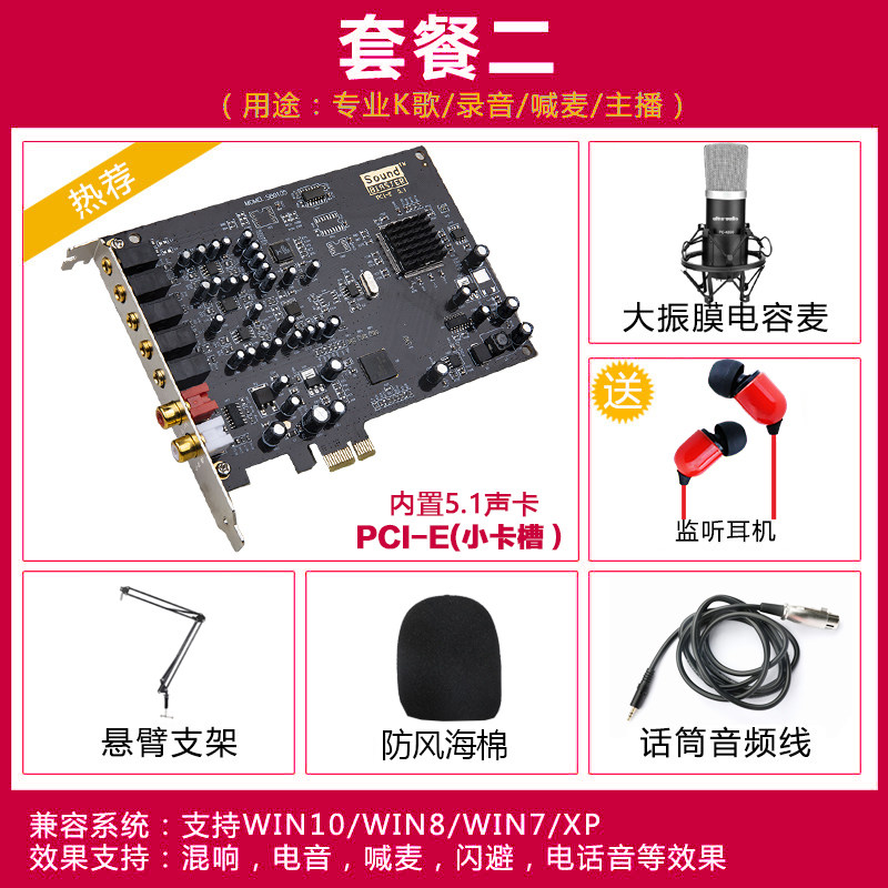 创新技术5.1声卡PCI-E小卡槽电脑独立内置主播直播SB0105套装设备