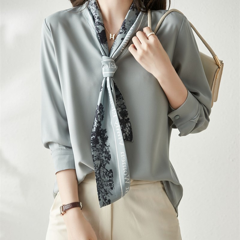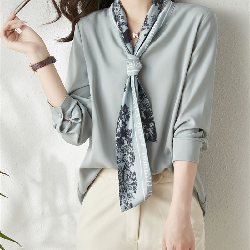 雪纺衬衫女春秋装2024年新款时尚洋气设计感小众衬衣叠穿长袖上衣