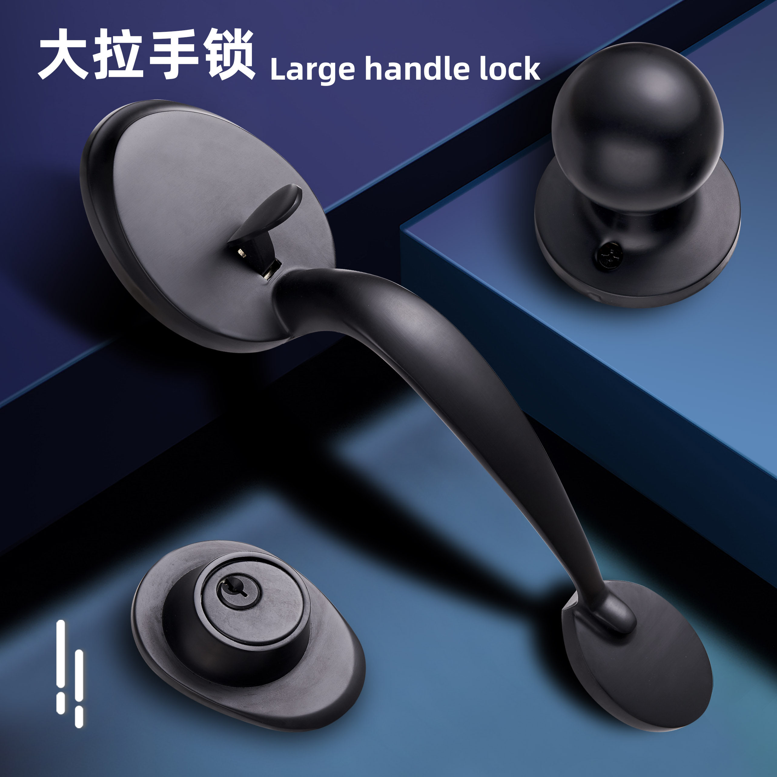美标门锁别墅大门锁欧式入户对开门单拉锌合金大门锁通用型大拉手