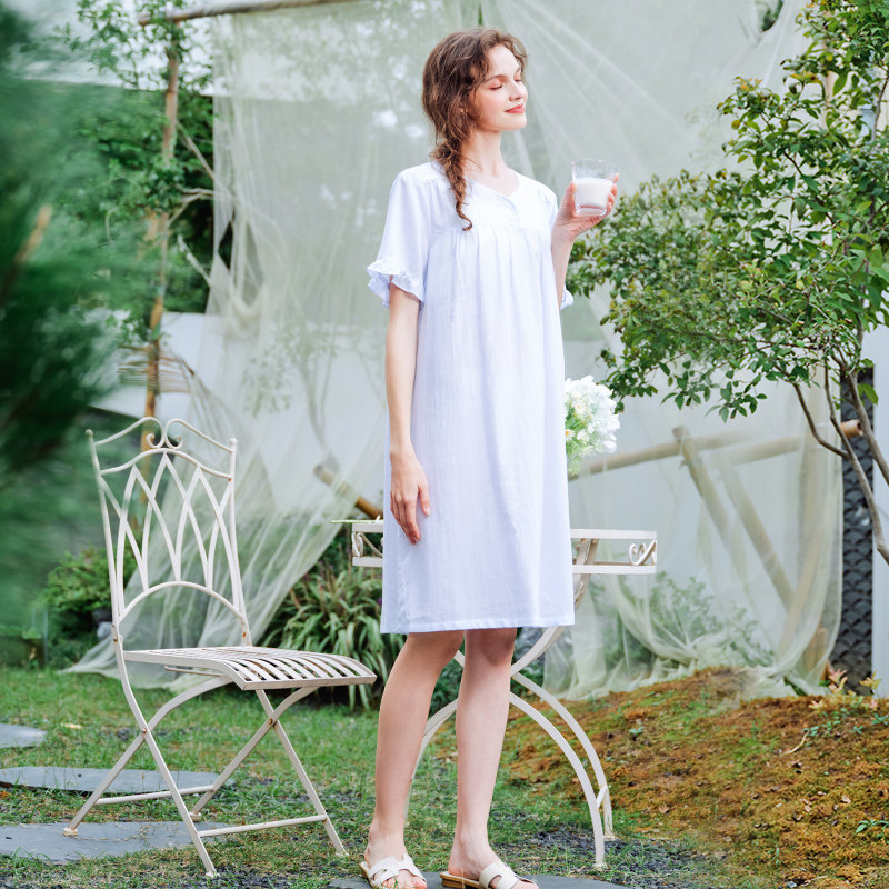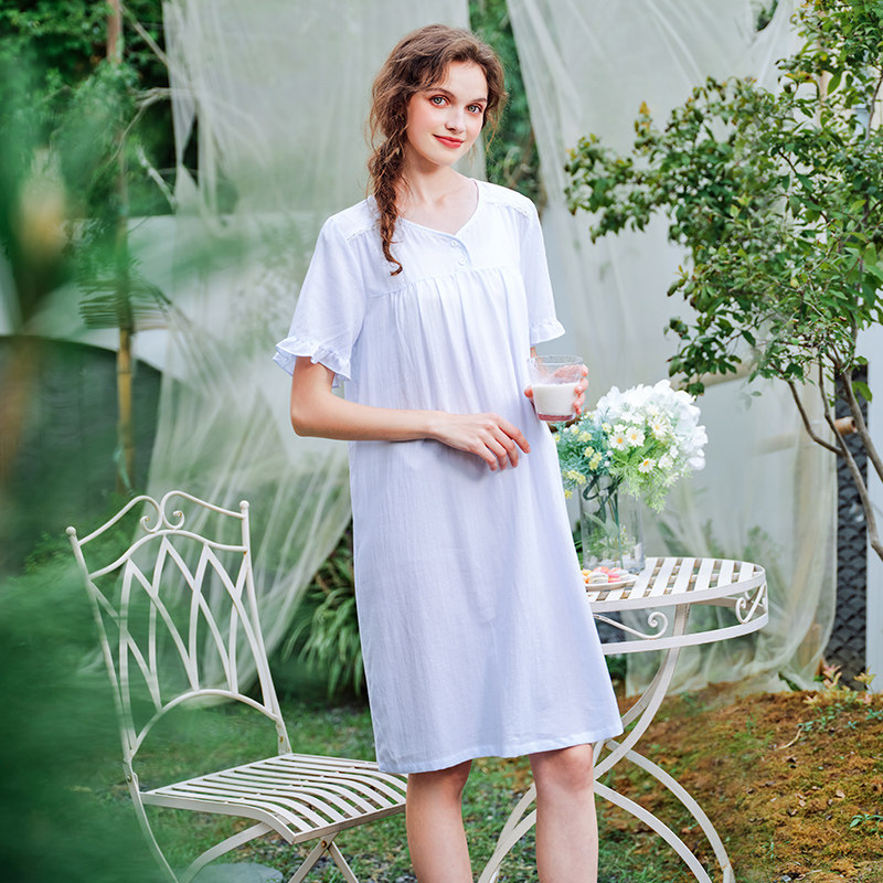 【秒杀】美标短袖纯棉睡裙女春夏全棉睡衣可外穿甜美公主风家居服