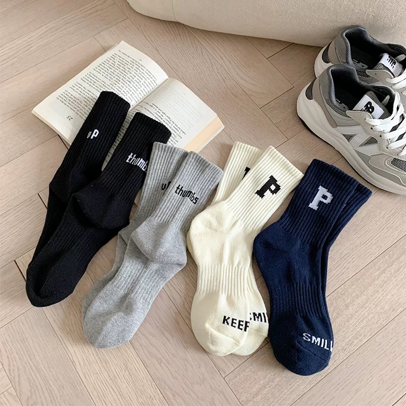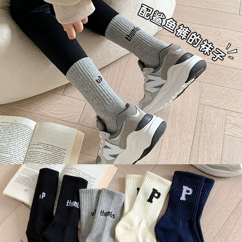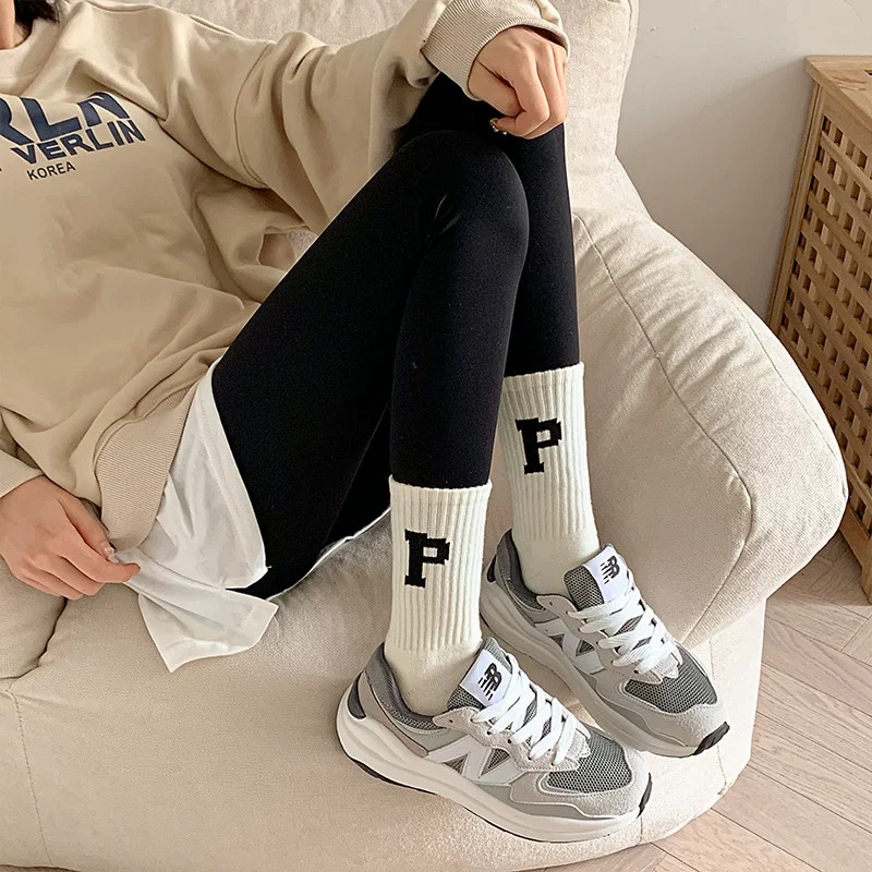 鲨鱼裤配的袜子女春秋纯棉中筒白色跑步运动袜毛巾底瑜伽长筒袜冬