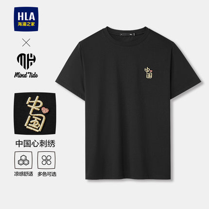 HLA/海澜之家中国刺绣短袖T恤凉感宽松印花纯色26春夏季打底衫男